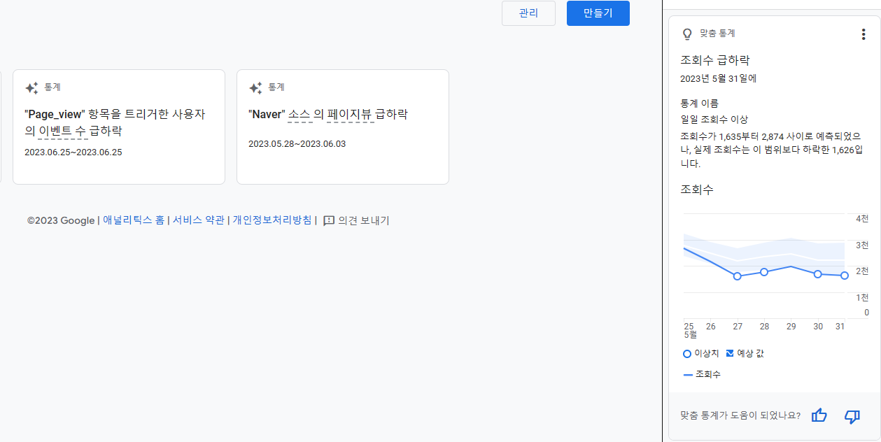 심지어 구글로부터는 공지메일로 새통계: 일일조회수이상 조회수 급하락의 통지메일을 받기도 합니다..