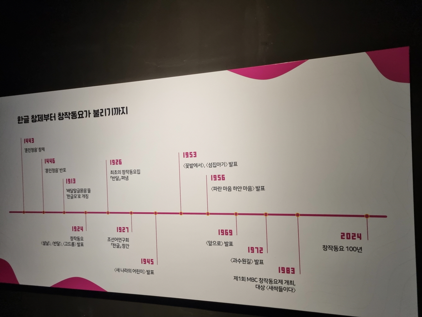 1443년 훈민정음이 창제되고 1446년 훈민정음이 반포되면서 우리나라는 고유언어인 한글을 가지게 되었으나 동요는 1920년대에나 들어서 동요들이 나오기 시작했습니다 반달, 고드름, 새나라의 어린이, 꽃밭에서, 섬집아기, 파란마음 하얀마음, 과수원길, 새싹들이다라는 유명동요와 함께 1924년 창작동요의 시작으로 보고 2024년을 창작동요 100년으로 보고 있는듯합니다
