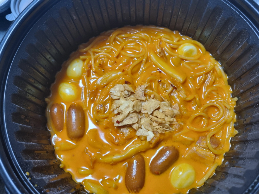 투움바떡볶이는 누들밀떡으로 되있고 베이컨이나 마늘칩등이 들어가있네요