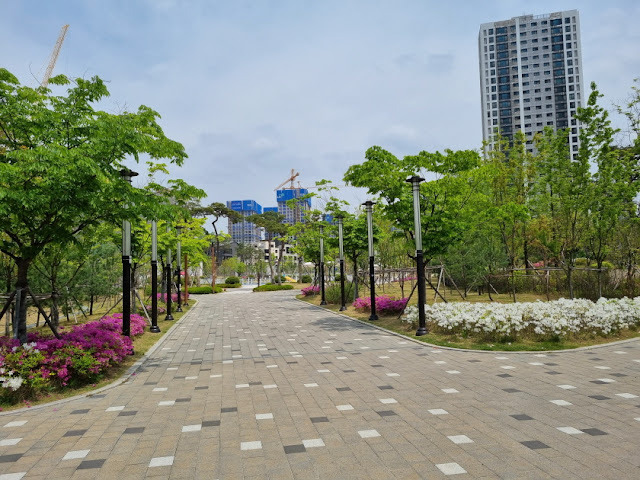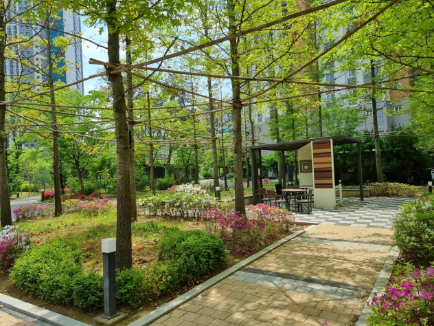 무더운 날씨 부동산임장에 지치다가도 이런 조경좋은 휴식공간을 보면 힐링이 됩니다