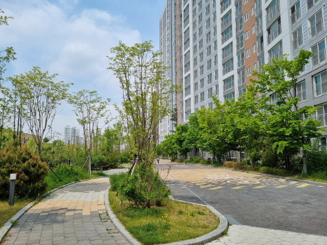 아파트 단지만 돌아도 충분히 산책될만큼 넓고 쾌적합니다 조경도 괜찮구요