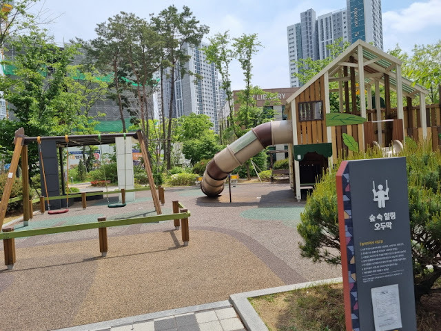숲속알림오두막이라는 이름의 어린이놀이터로 그네도 있고 놀고싶어집니다