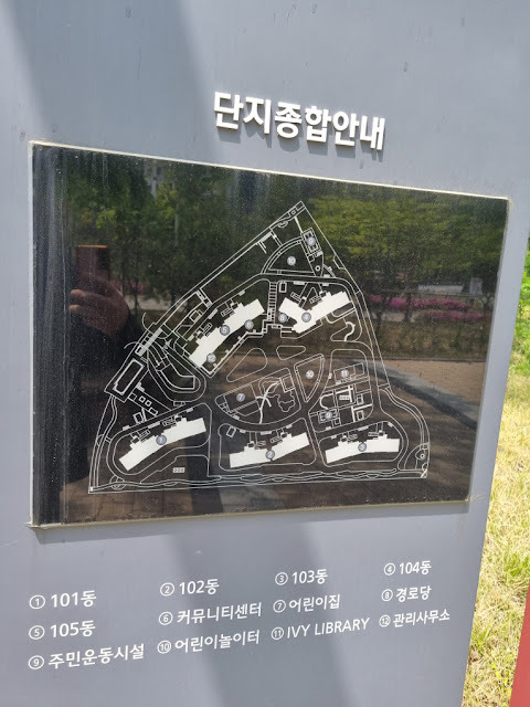 101동부터 105동 커뮤니티센터와 어린이집, 경로당, 주민운동시설, 어린이놀이터, ivy library(독서실), 관리사무소 이렇게 구성되어 있습니다