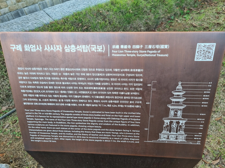 구례 화엄사 4사자 삼층석탑에 대한 설명문입니다 경주 불국사 다보탑과 함께 한국을 대표하는 석탑이라고 합니다