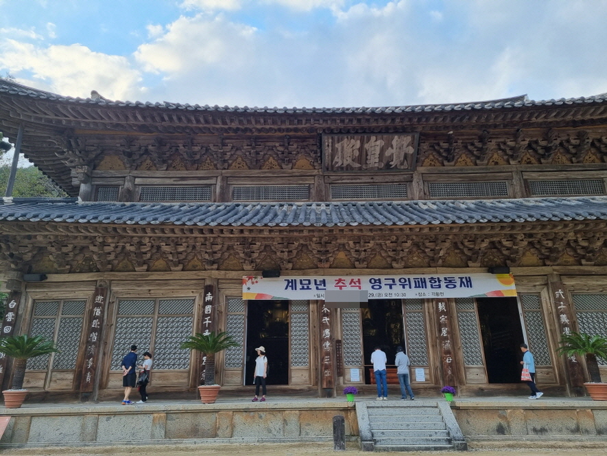 현존하는 목조건물로는 국내 최대규모이며 주위에 있는 유물들도 거의 국보거나 보물입니다