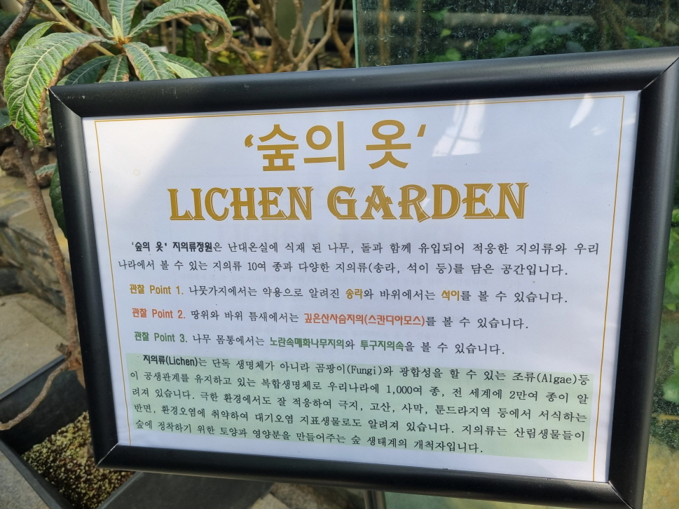 국내 첫 지의류 실내전원이라는 국립수목원 난대온실 전시였습니다