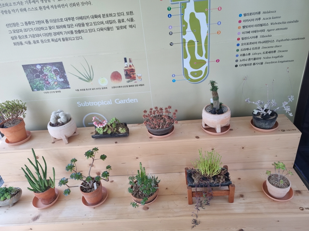 선인장을 비롯해 여러가지 아메리카 아열대식물들이 많이 있었습니다 10개정도의 식물군으로 전시가 되어 있었구요