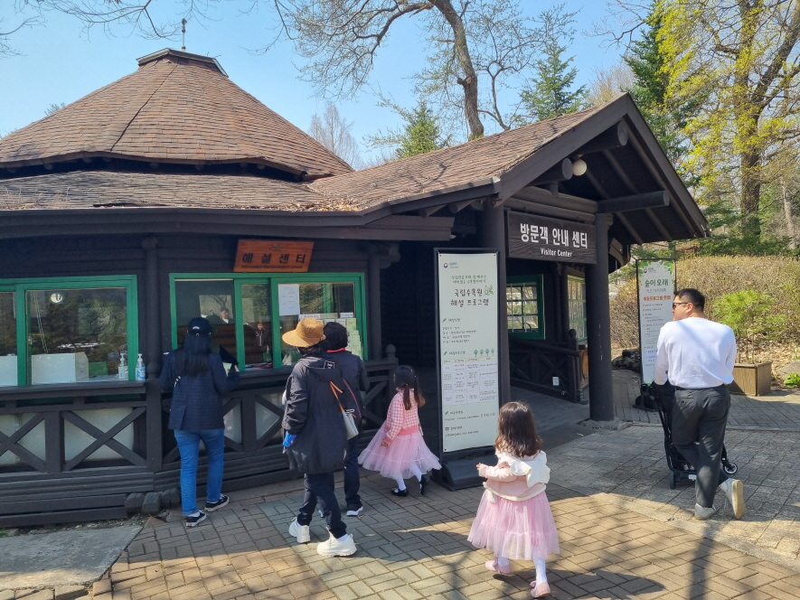 국립수목원 입구에는 주차장이 있고 방문객안내센터와 매표소가 있습니다
