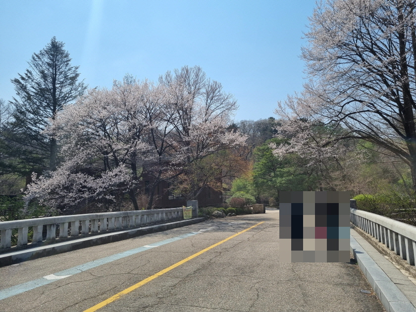 아직 봄이 다가오지는 않아서 드문드문 벚꽃이 있고