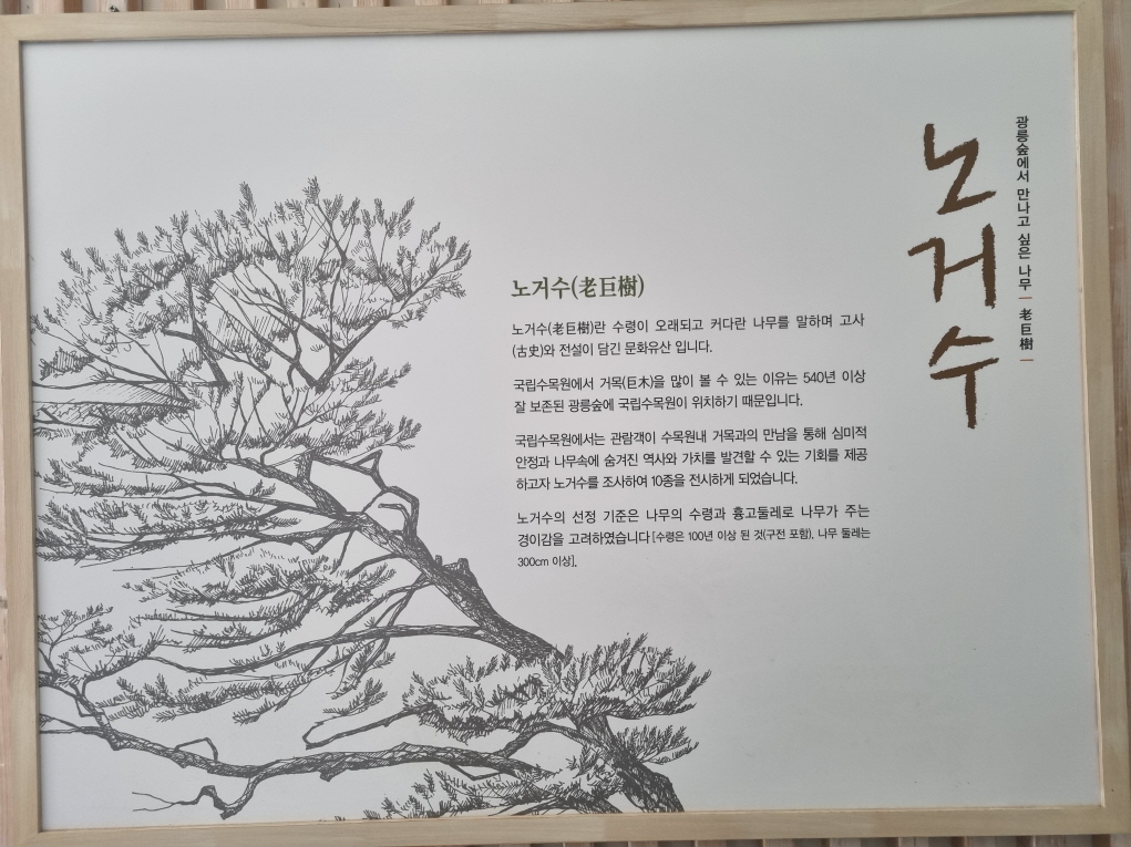 아까 저도 느꼈듯이 국립수목원에서 거목을 많이 볼 수 있는 이유는 540년 이상 잘 보존된 광릉숲에 국립수목원이 위치하기 때문이며 그로 인해 노거수가 많이 있습니다