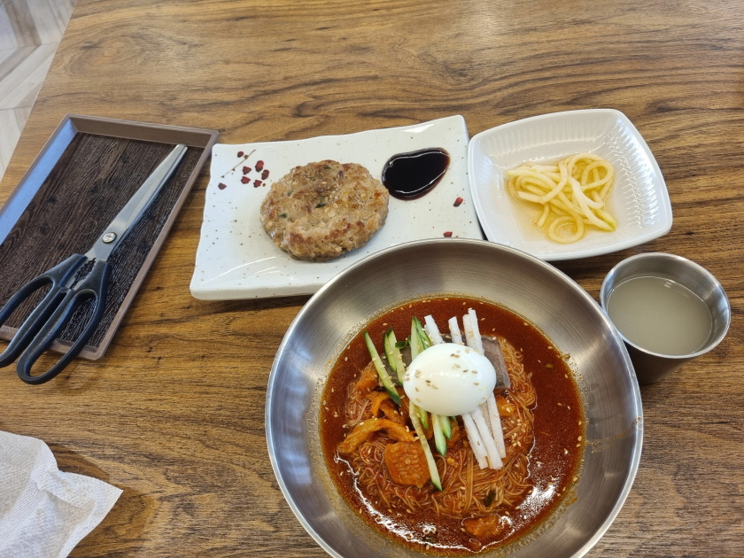 함흥도하냉면의 시그니처메뉴 세끼미냉면과 떡갈비입니다