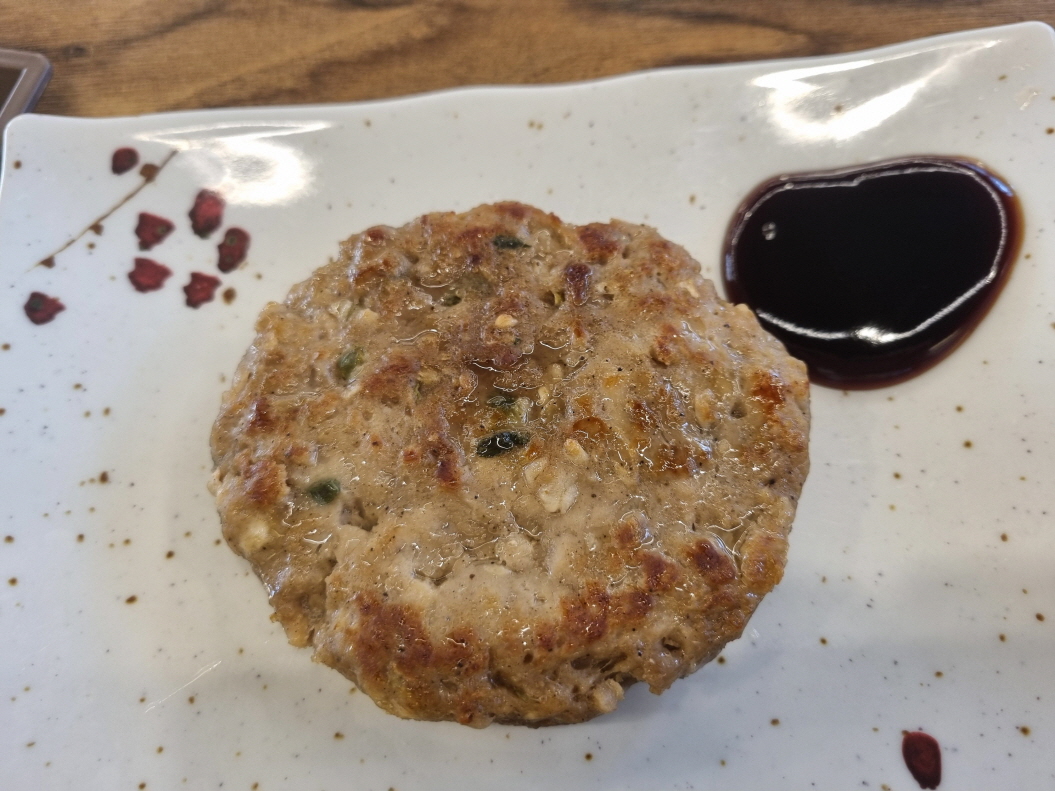 함흥도하냉면 떡갈비도 수제떡갈비로 돼지목살로 만들었다고 합니다 아주 잘 꼭꼭 고기가 눌러담겨서 제대로 되었고 맛있었습니다 소스랑도 잘 매칭됐구요 살짝 육향이 느껴지긴했지만 뭐 떡갈비가 그정도 향은 있어야겠죠
