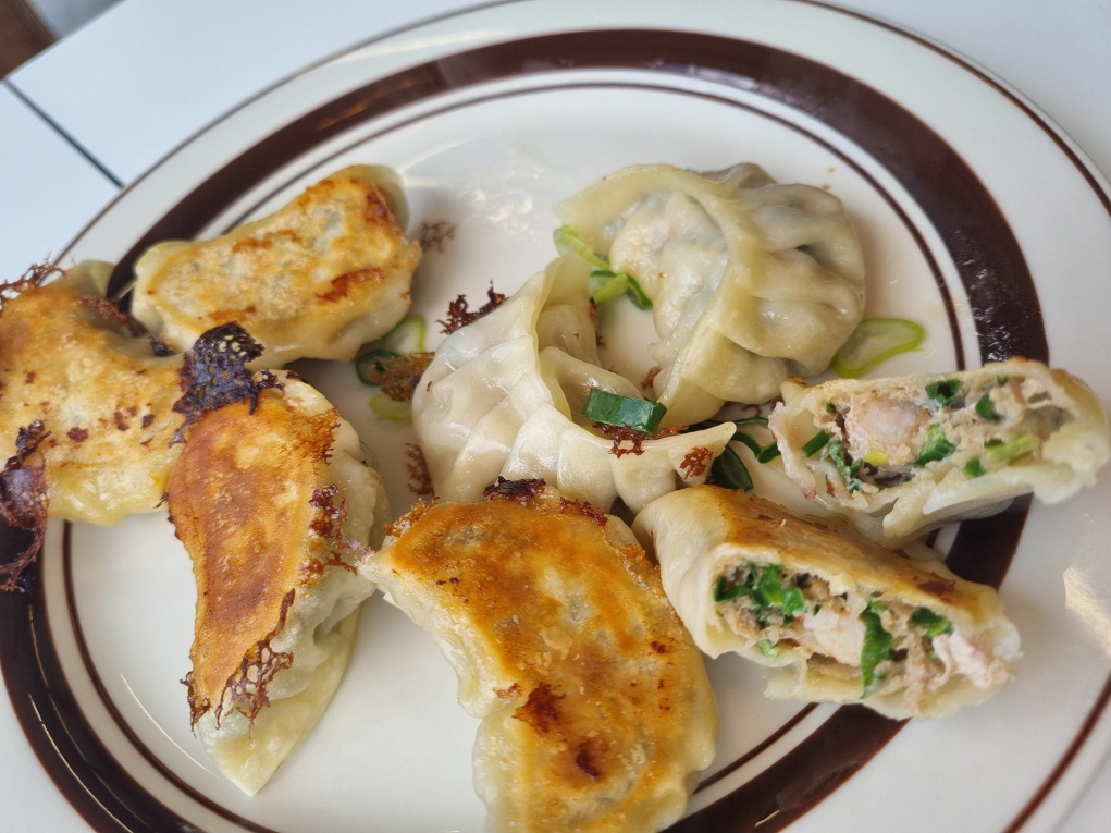 한쪽면은 바삭하게 굽고 한쪽면은 부드러운 그런 스타일의 군만두였습니다 크기도 아주 적당했구요