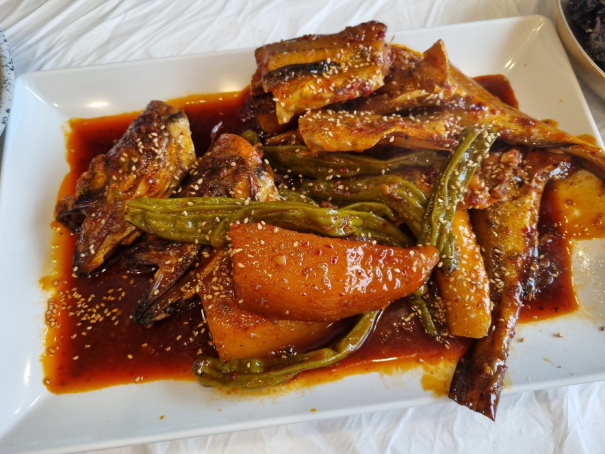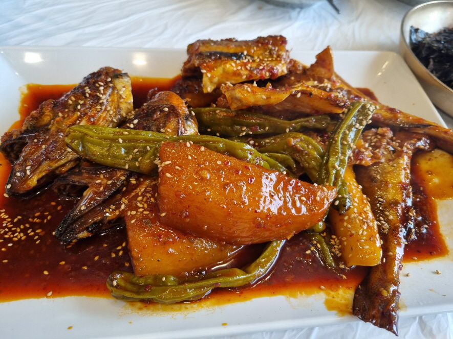 생선을 못먹는 저도 거부감이 없을 정도로 비린내나 그런 느낌이 전혀 없어서 꽈리고추랑 무랑 밥 한그릇 끝내버렸구요