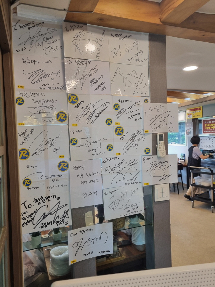 입구에 들어가면 런닝맨 연예인들이 싸인을 남기고간 흔적들과 유튜버들의 싸인이 있습니다