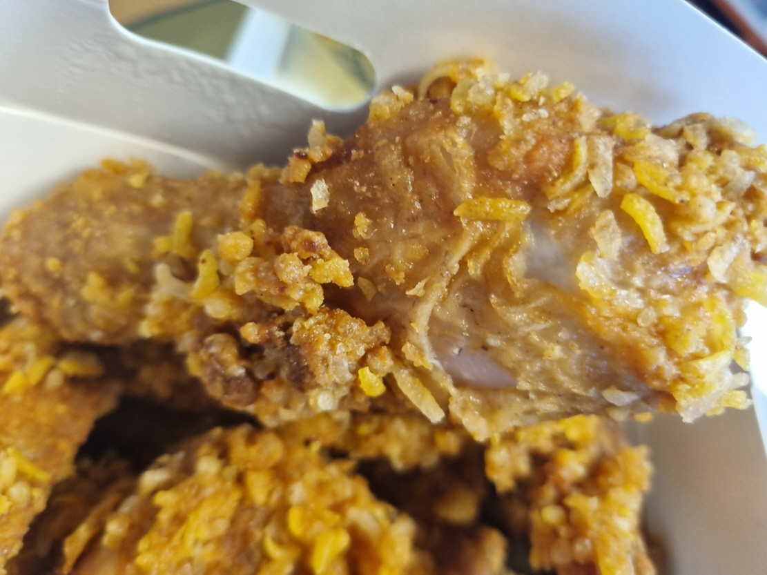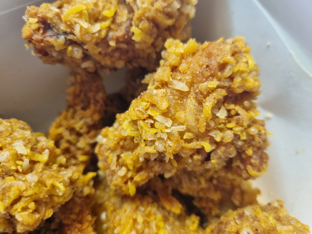 옥수수, 쌀, 감자를 이용해 크리스피함과 바삭함을 더했다는건데.. 저는 이게 누룽지치킨에서 영감을 얻은게 아닌가 싶습니다