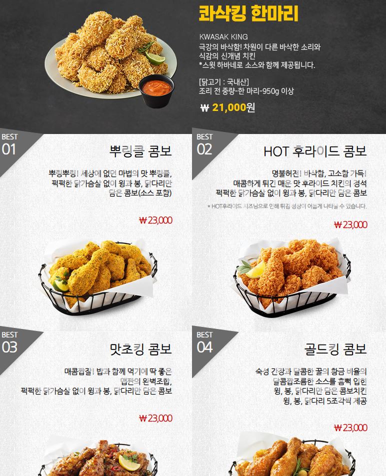 극강의 바삭함 소리까지 맛있다라는 super Crunchy king이라는 콰삭킹 치킨..