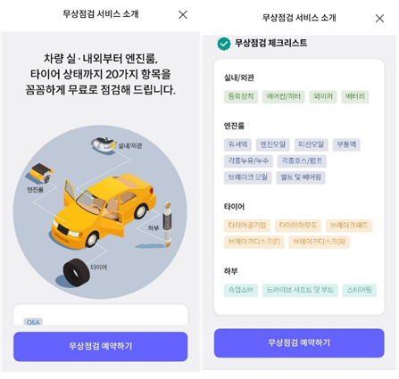 무상점검도 타이어나, 엔진룸 등 차량 20가지 항목을 무료 점검해줍니다