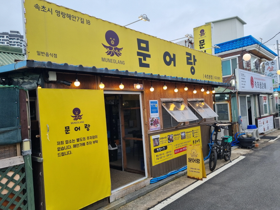 문어랑 속초본점은 별도의 주차장이 없어 해안가에 주차하고 와야합니다
