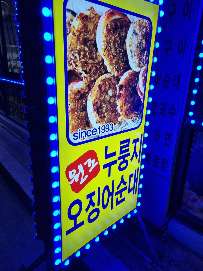 저녁 7시무렵 문 닫을 시간이었는데 수십명이 누룽지오징어순대를 포장하러 대기하고 있었습니다