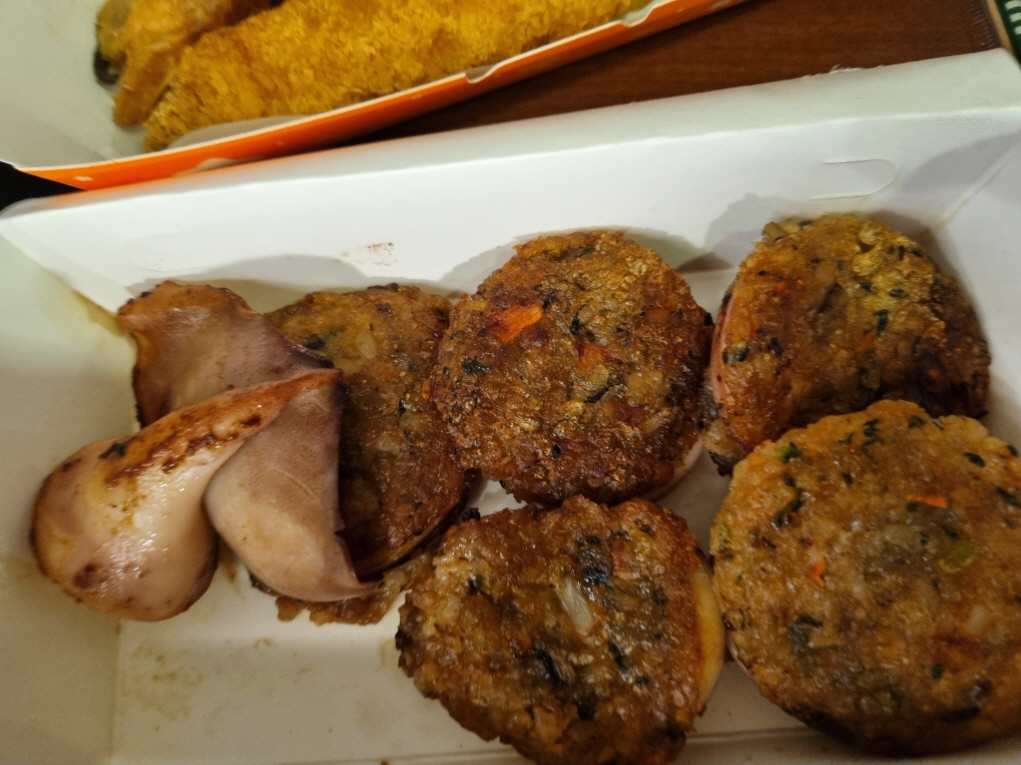비교삼아 속초중앙시장에서 사온 누룽지오징어순대도 보여드릴게요