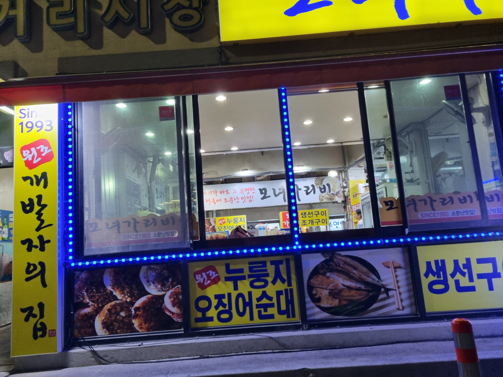 그 중에서 누룽지오징어순대 파는 곳은 여러 곳이 있는데 제일 원조격이고 누룽지오징어순대는 이 집이다 하는 곳이 모녀가리비라고 해서 먼길 돌아돌아 찾아갔습니다