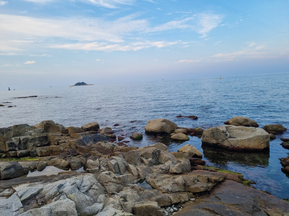 앞에 보이는 조그만한 섬은 조도라는 이름이 있다고 하네요 참 평화롭고 힐링되는 느낌의 해수욕장 백사장입니다