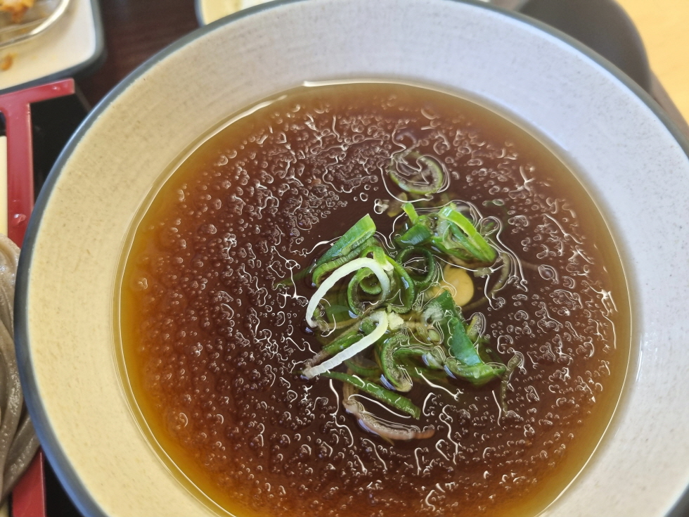 메밀소바 육수 훌륭했습니다 짠 맛은 당연히 없고 아주 잘 어울렸습니다