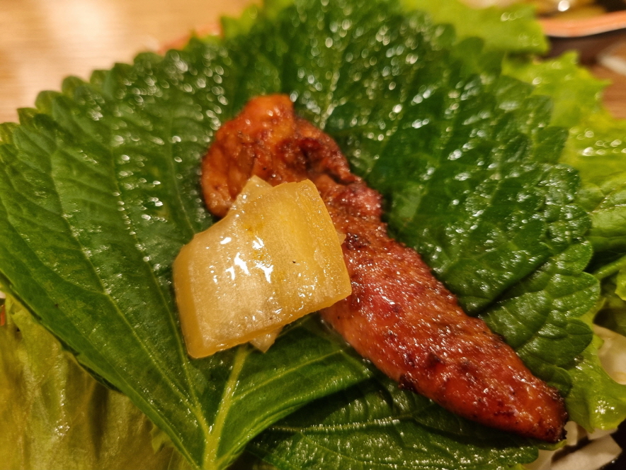 별로 느끼하지도 않지만 그래도 느끼함을 덜어주는 쌈무랑 절임밑반찬들과 같이 먹으면 그마저도 조금 느껴지는 느끼함도 싹 날라갑니다 셀프바에 모든 기본 메뉴랑 쌈이 다 있기 때문에 샐러드랑 쌈등등을 몇번 가져다 먹었습니다