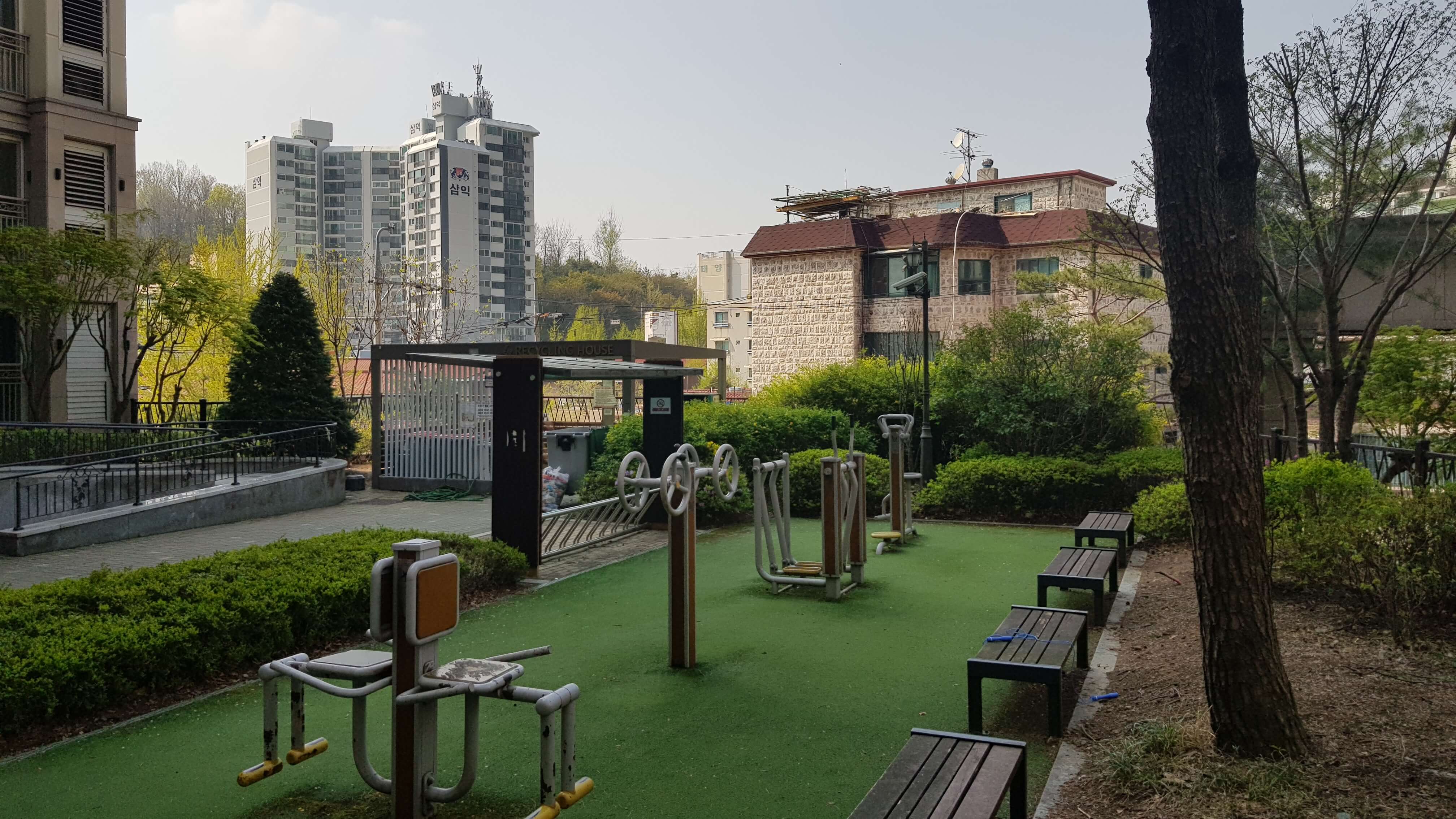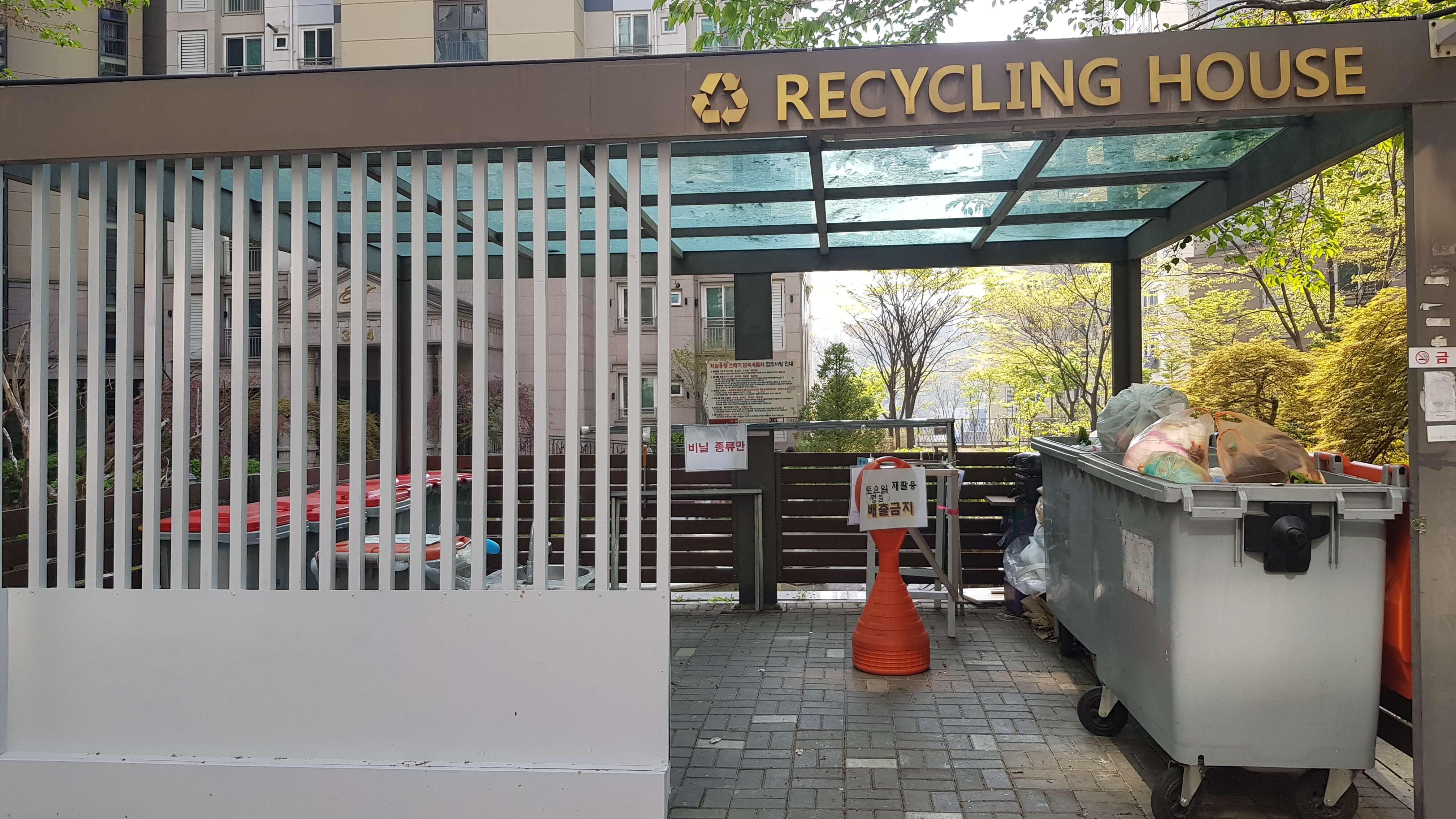 단지앞 2-3동마다 분리수거장이 있는거같고요 RECYCLING HOUSE 라고 이름도 있네요 ㅋㅋ