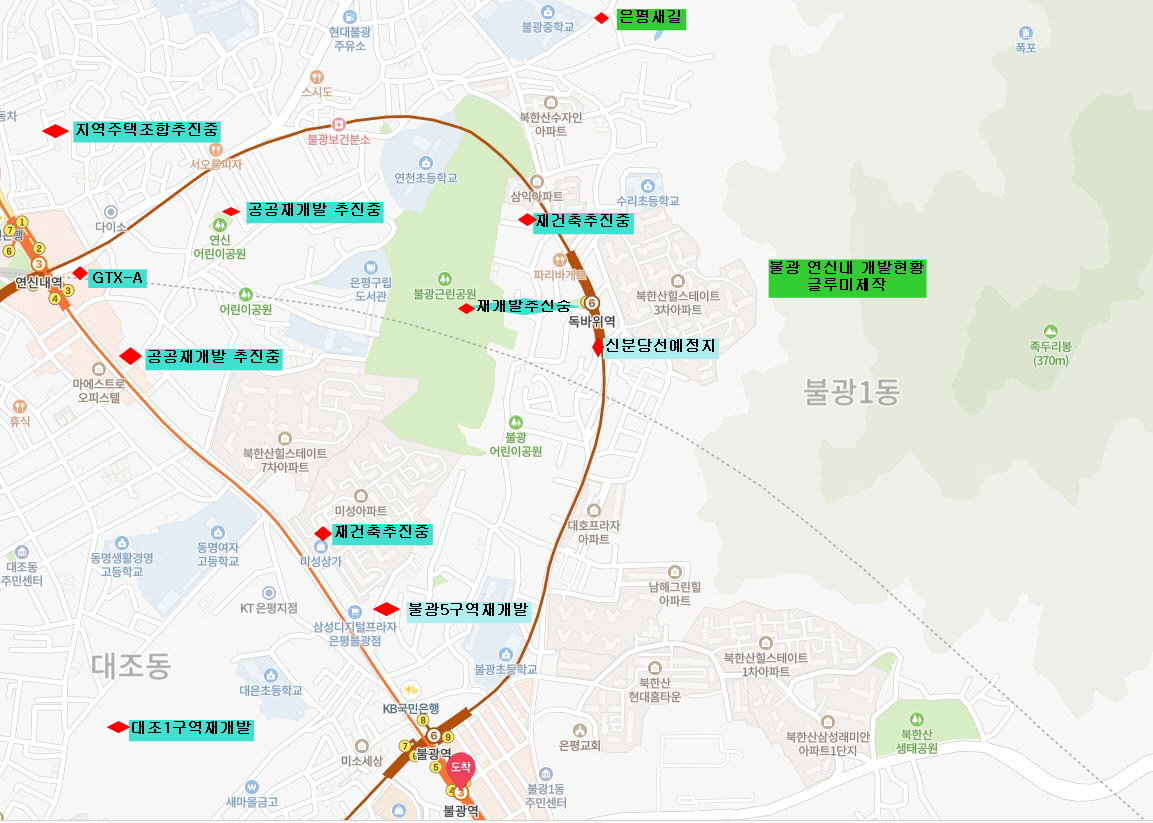 북한산 힐스테이트3차를 기준으로 불광동, 대조동, 연신내 부근의 2021년 현재 개발추진과 호재상황들을 살펴보죠