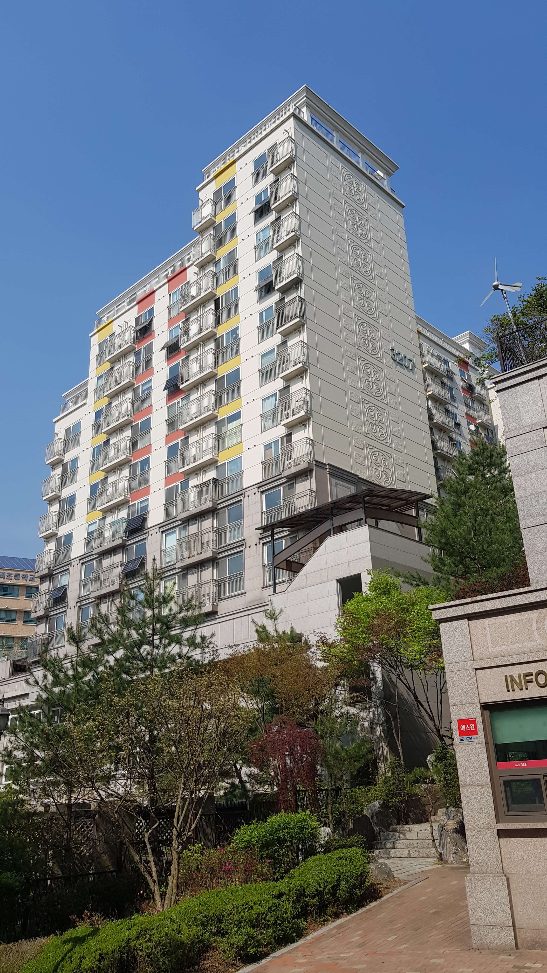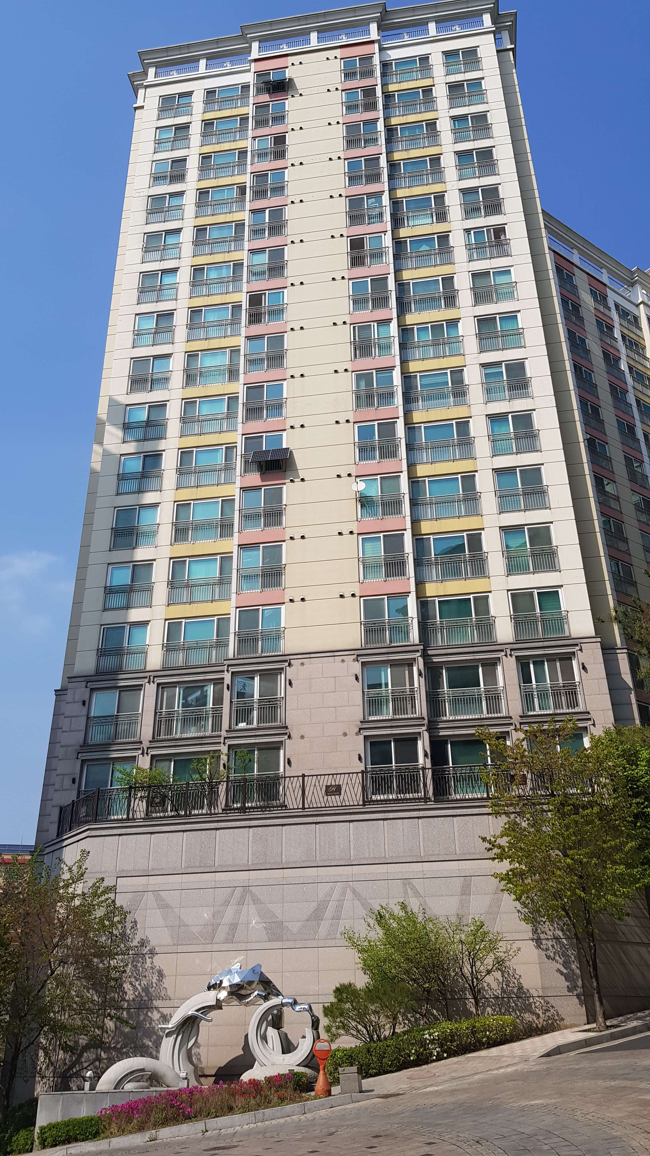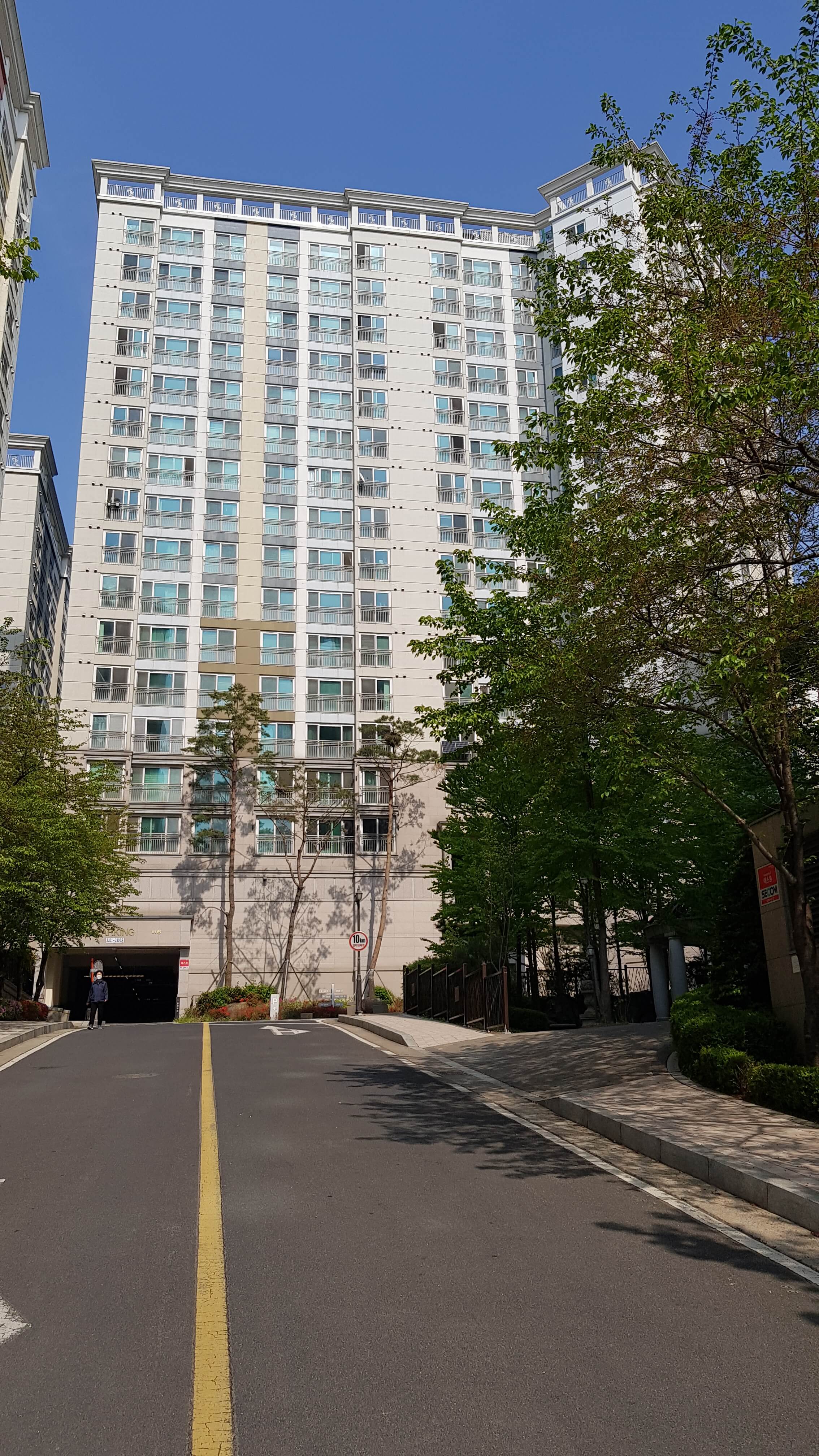 건물이 깨끗하고 웅장해보이죠 판상형이라 중층이상 전망은 앞이 탁 트여있을거 같습니다 경사가 좀 있습니다