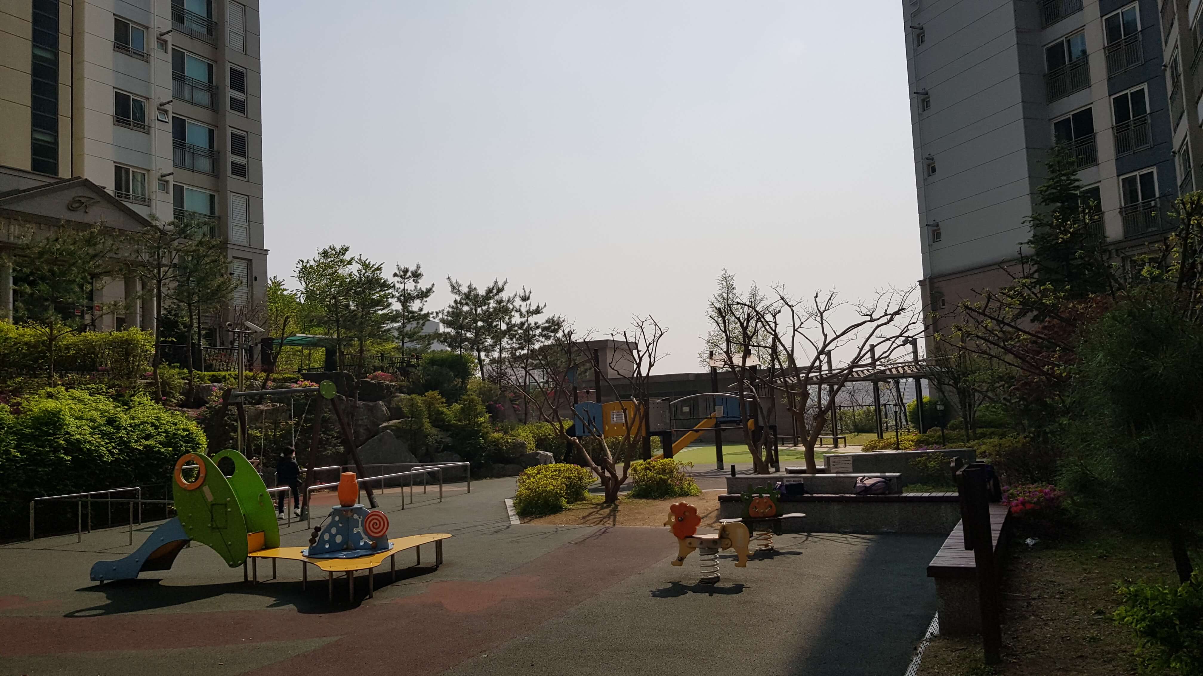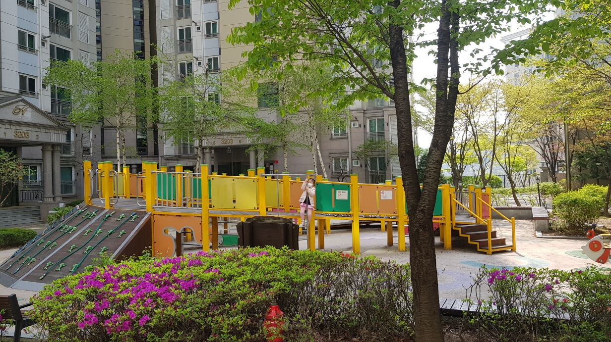 그래도 평탄화하려고 노력했어요 단지 조경들도 깔끔하고 흠잡을데가 없어보입니다 특히 아이들이 정말 많더라고요