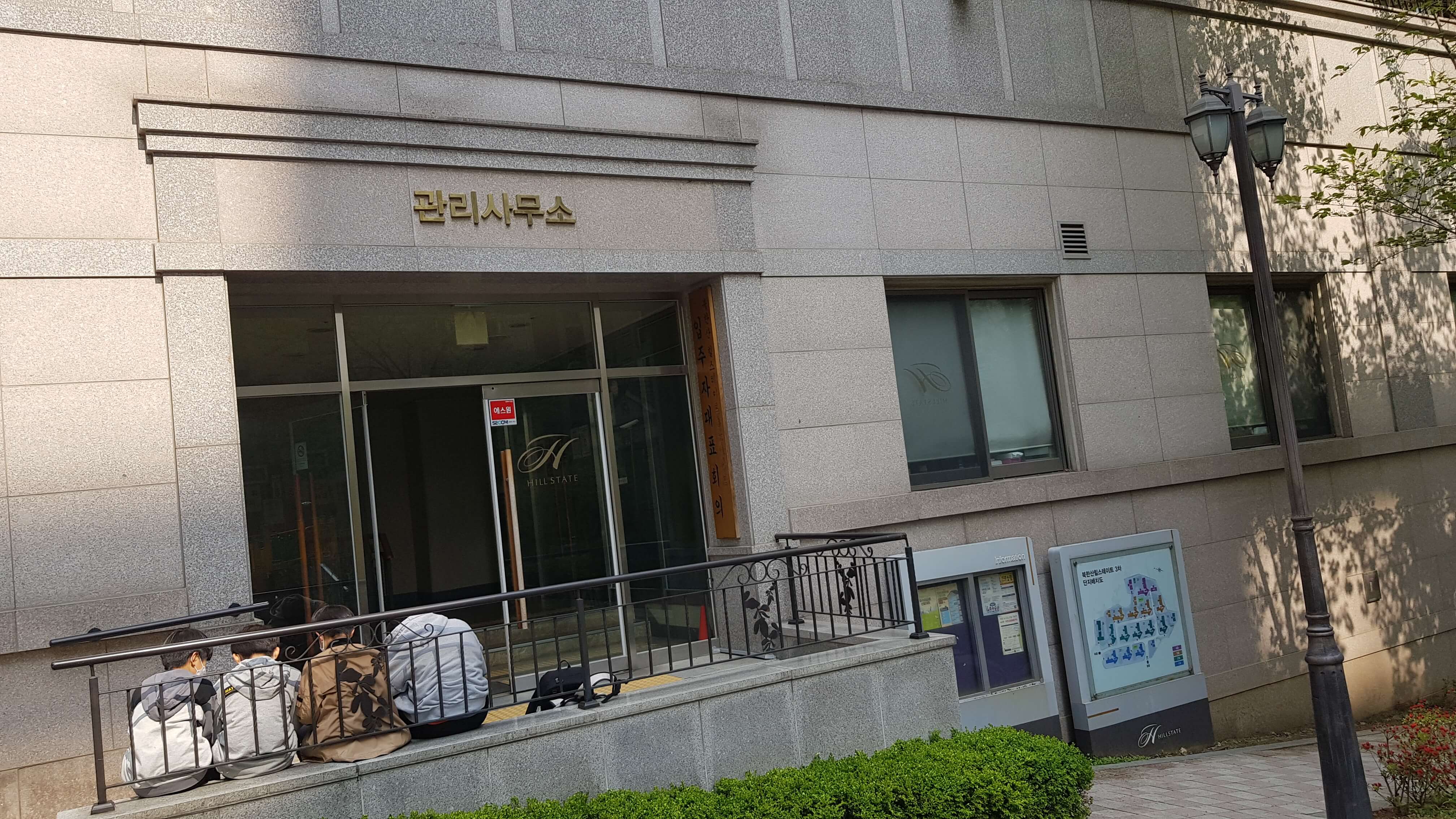 3305동 앞에 관리사무소가 있습니다 들어가보진 않았지만 관리사무소 앞에 아이들이 나란히 뭘 하고 있는걸까요