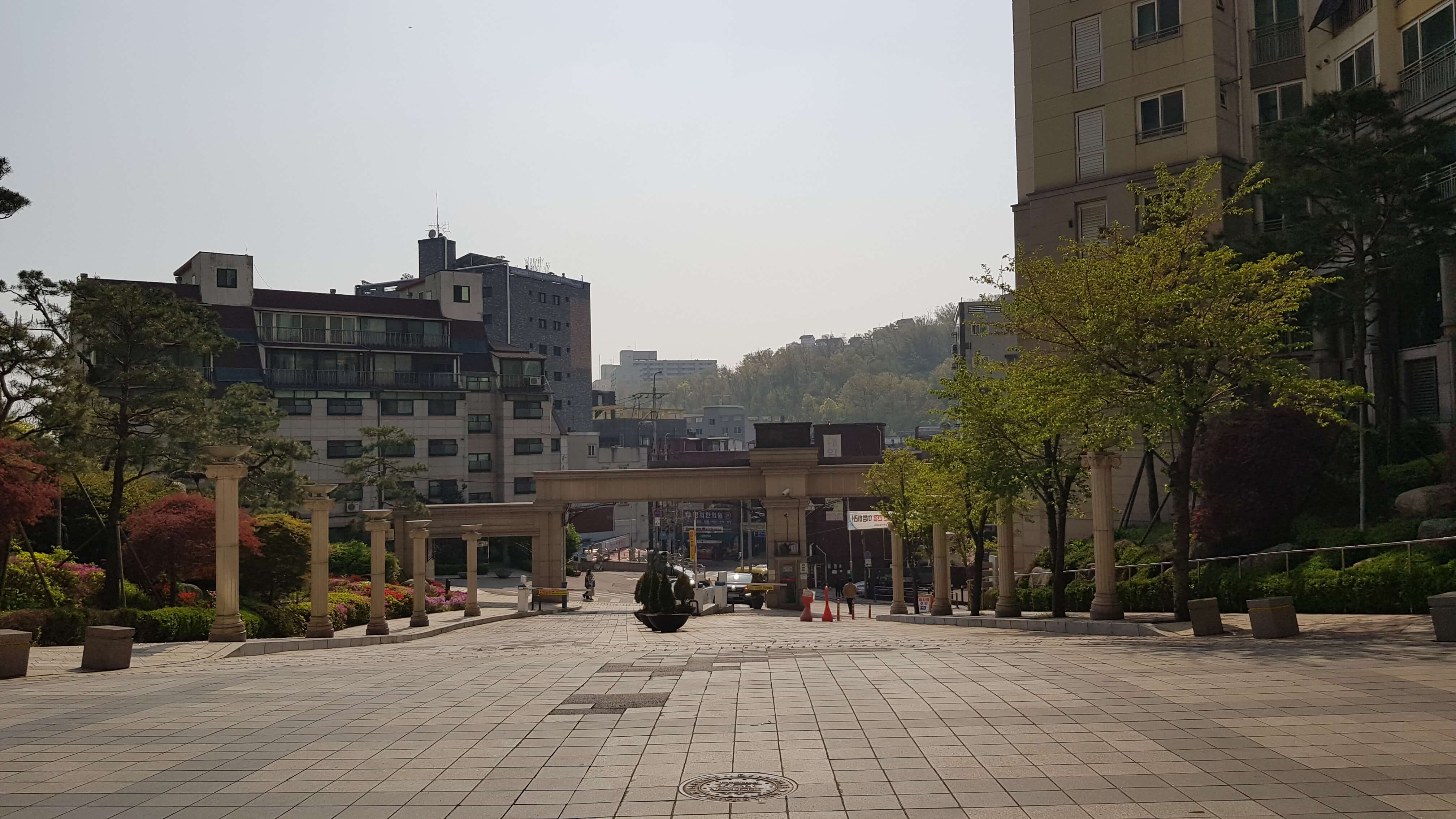단지 입구를 따라 올라가고 있습니다. 유럽풍의 힐스테이트 특유의 건물들이 인상적입니다