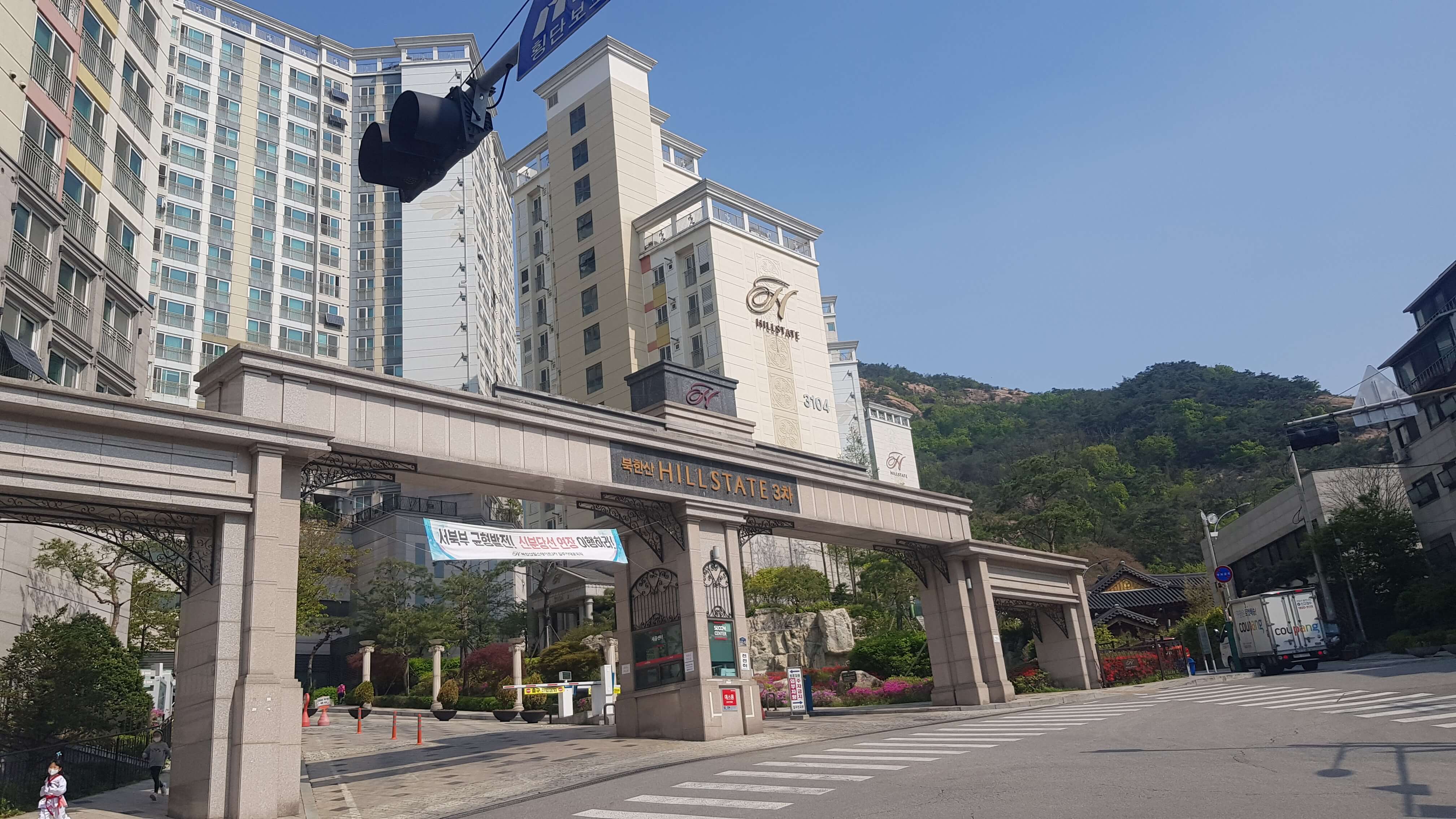 북한산힐스테이트3차 후문 전경입니다 여기도 주차보안이 잘 되어있고 바로 앞에 수리초등학교가 있다고 합니다