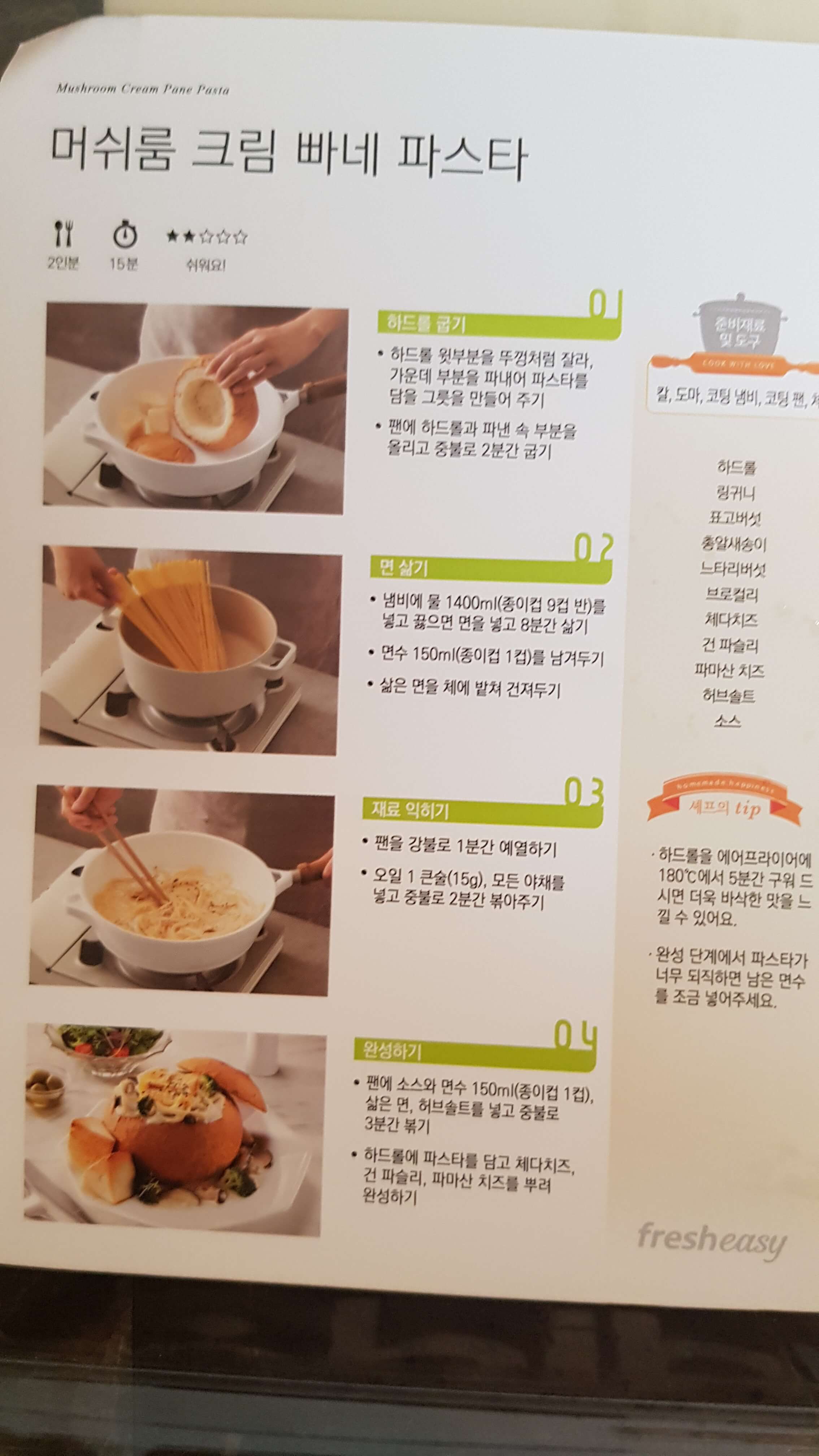 머쉬룸 크림빠네파스타 조리난이도는 별2개네요