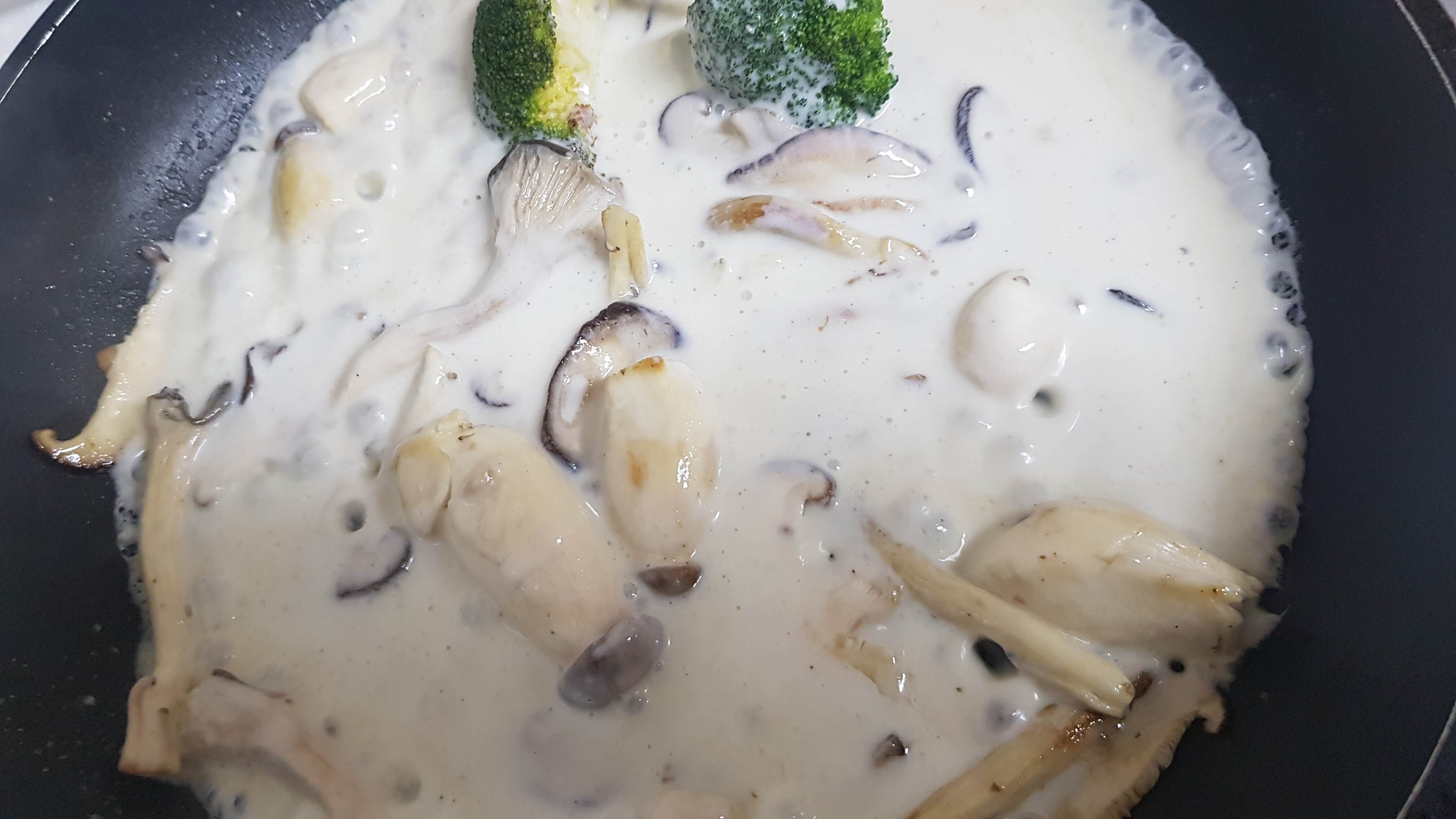 버섯이 익어가면 크림소스를 부어주고요