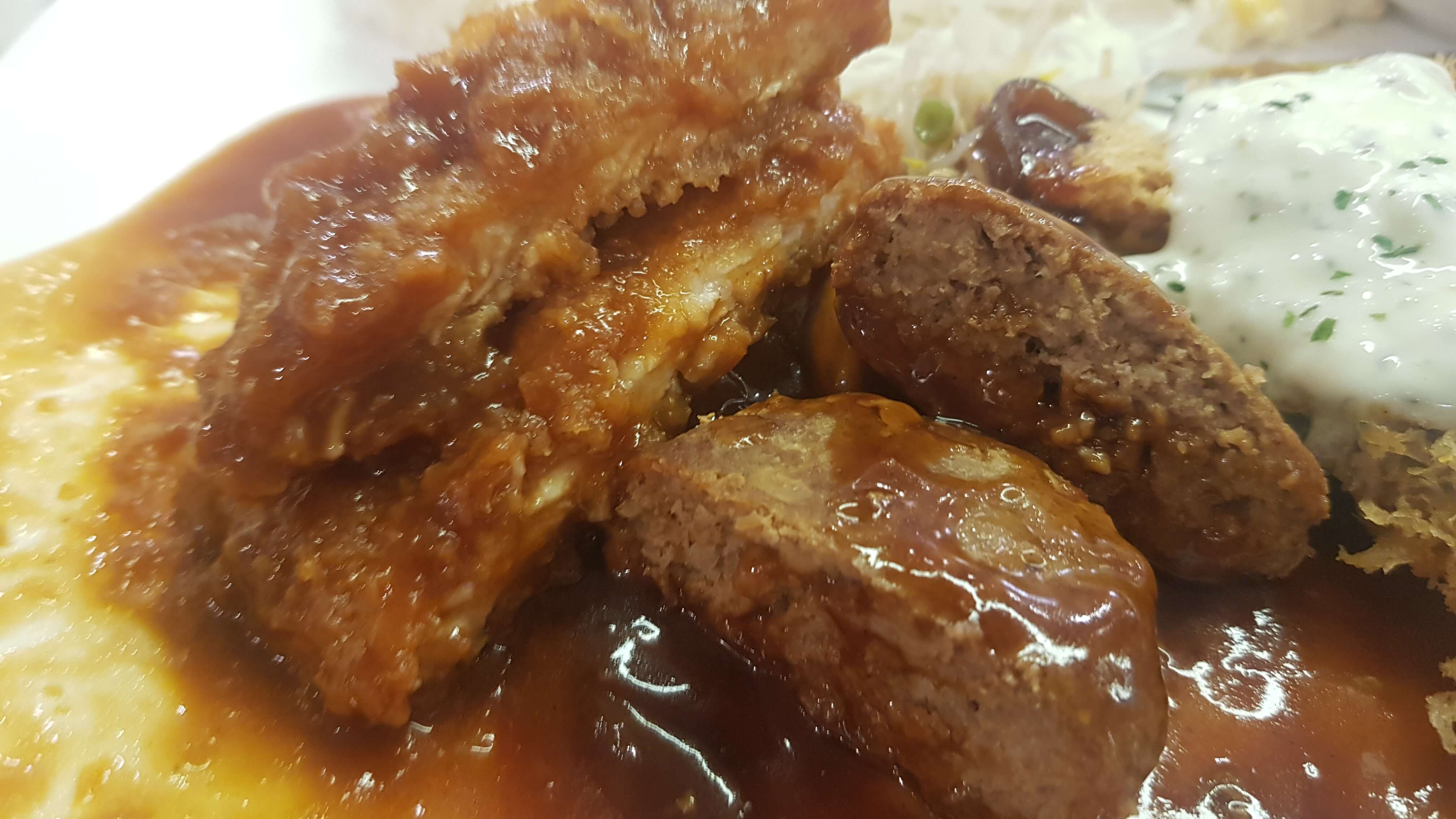 함박스테이크 단면과 돈까스단면입니다 배가 고프긴했는지 그냥 싹싹 다 비워버렸습니다 괜찮았어요
