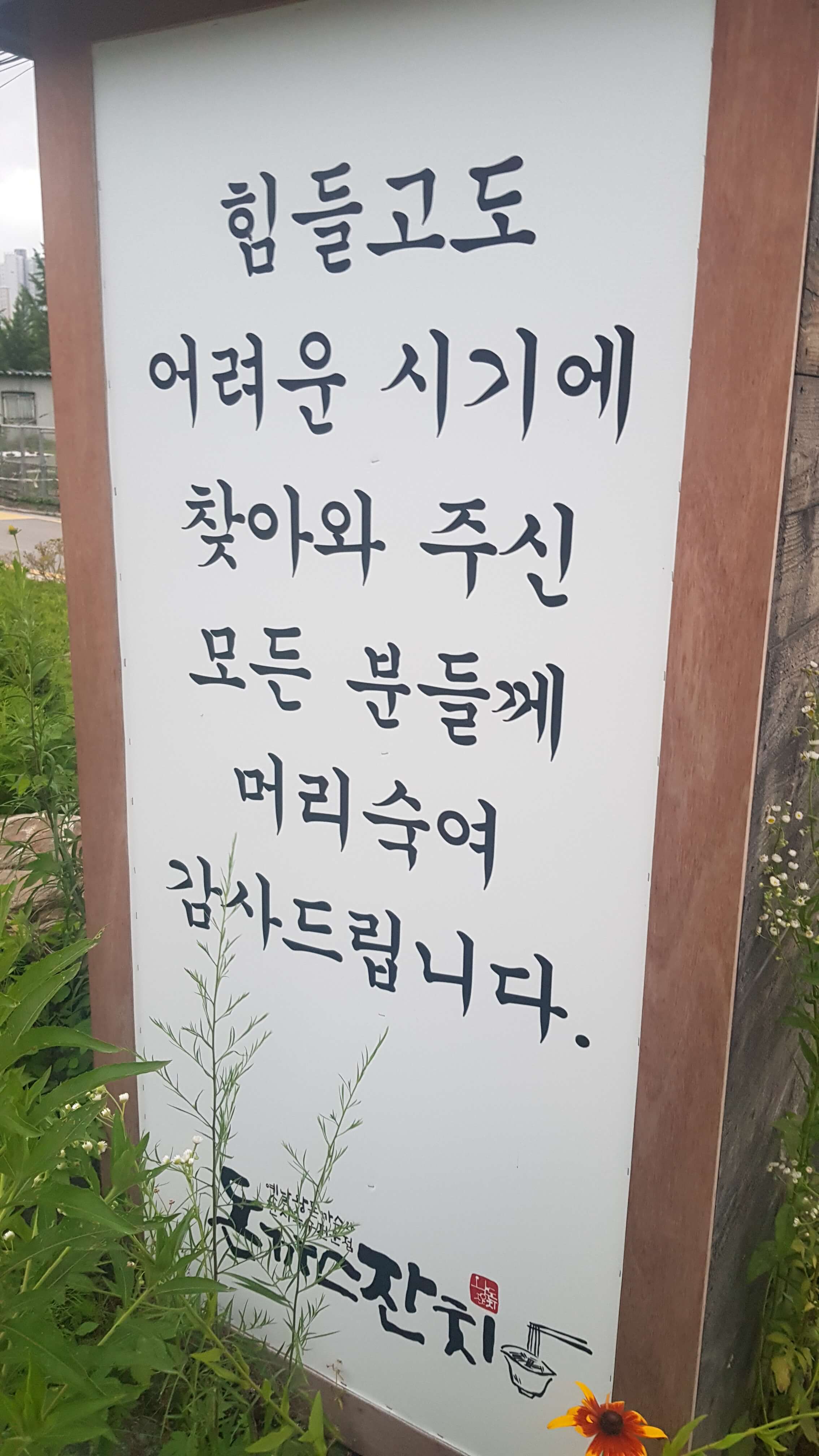 잘먹고 나왔습니다 코로나로 인해 정중한 감사인사가 새겨져있네요