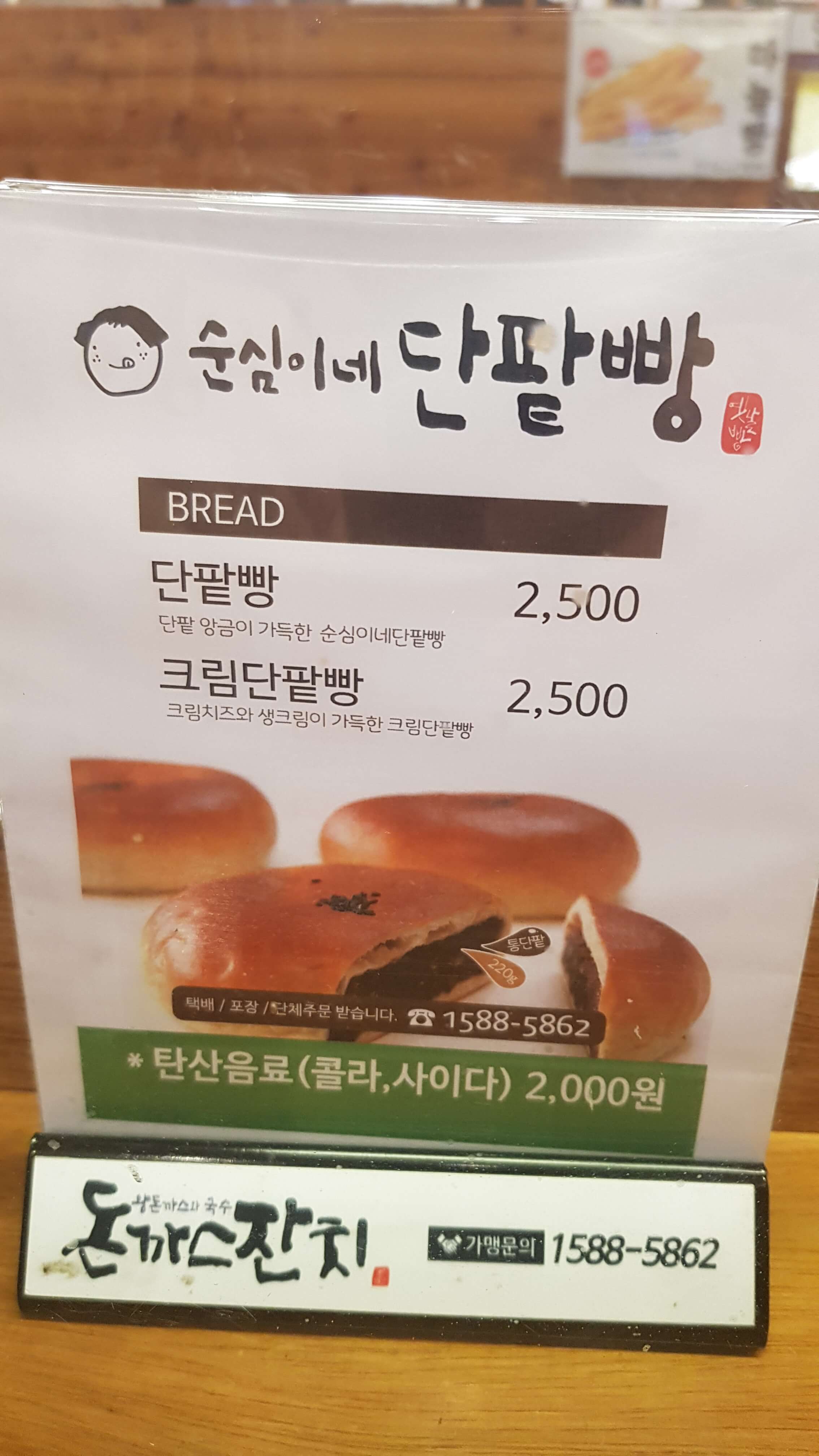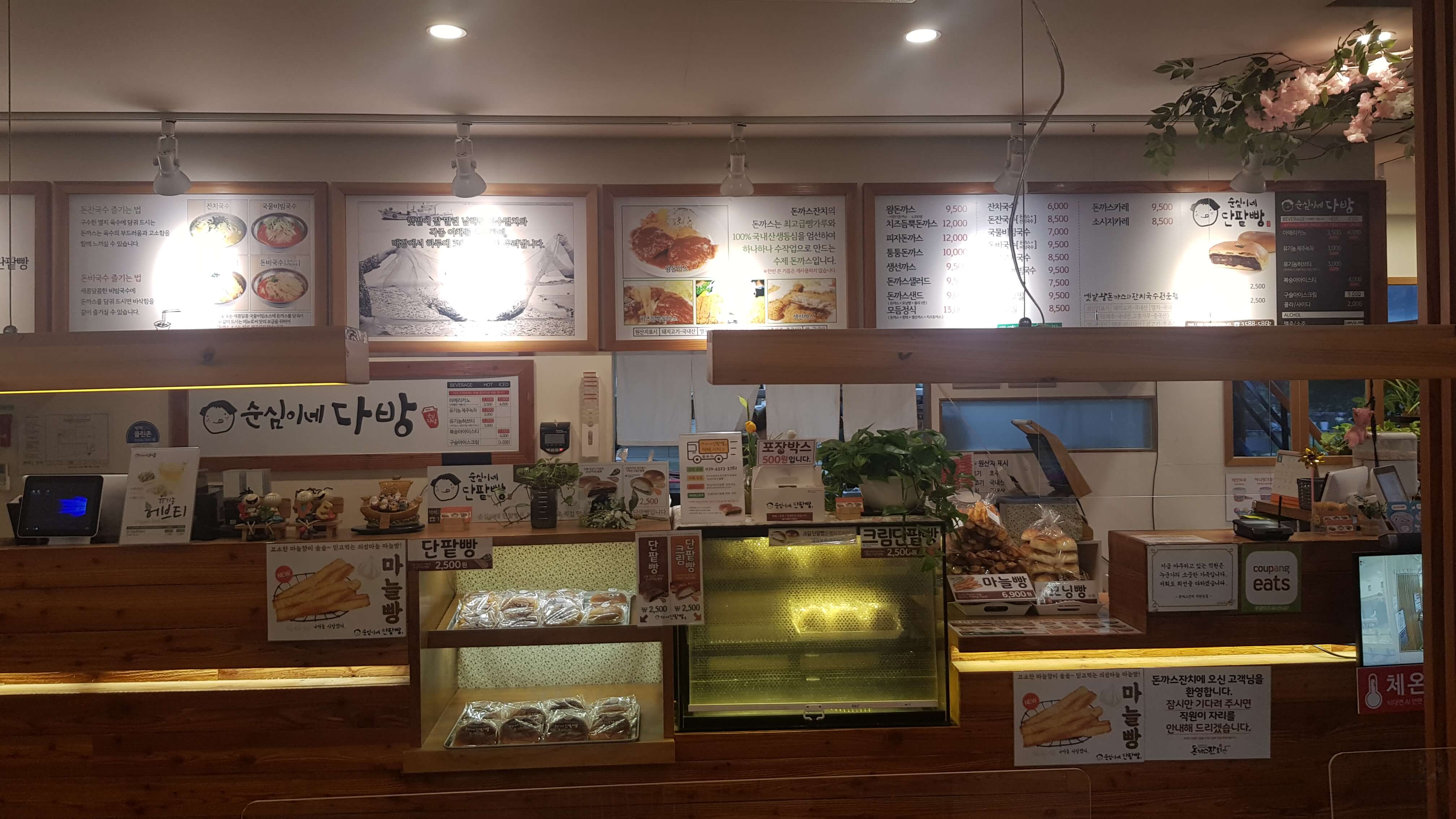 돈까스잔치 카운터고요 순심이네 단팥빵과 크림단팥빵 마늘빵 모닝빵 그리고 순심이네다방해서 카페음료메뉴도 합니다