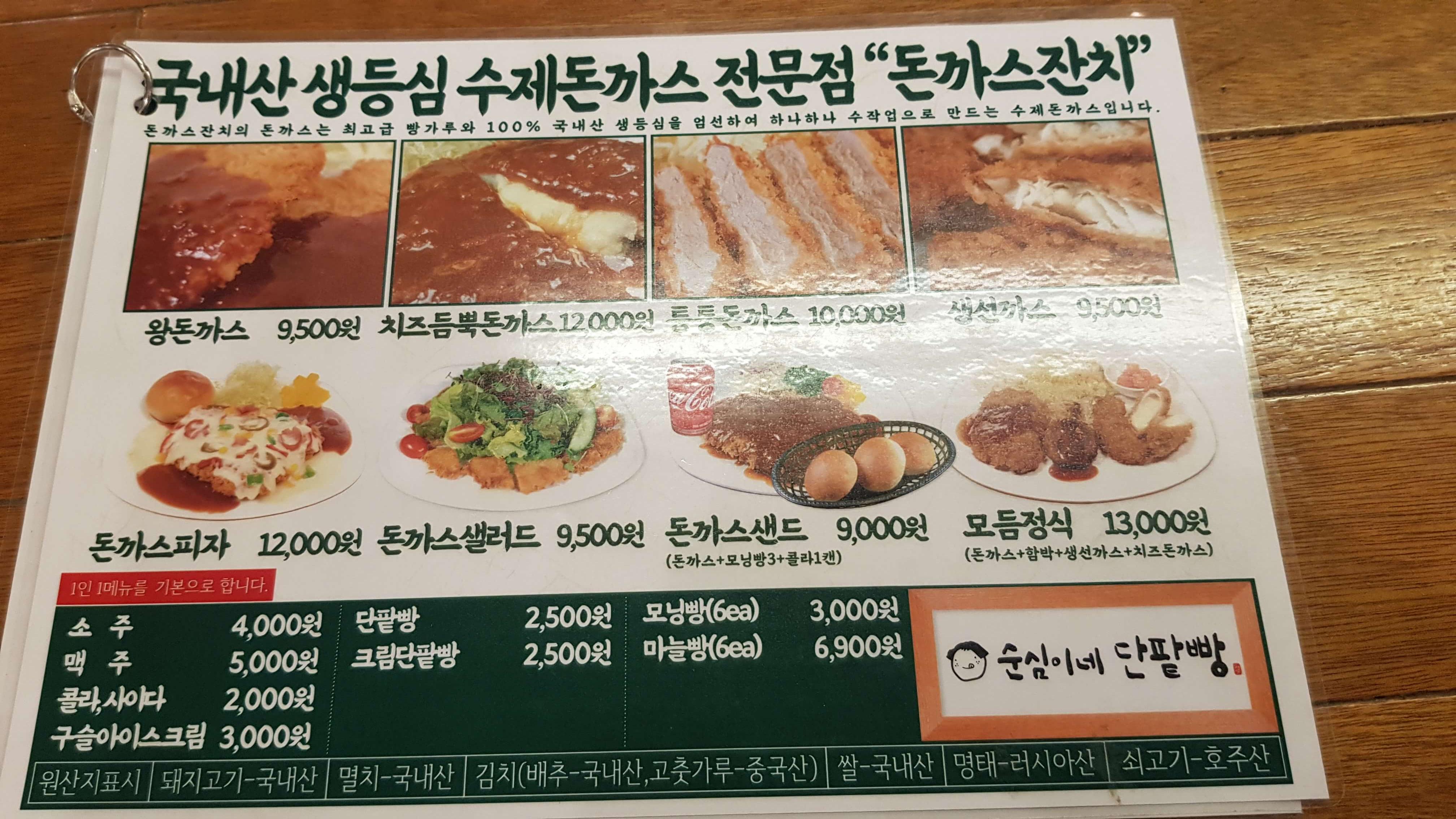 돈까스잔치 메뉴판입니다