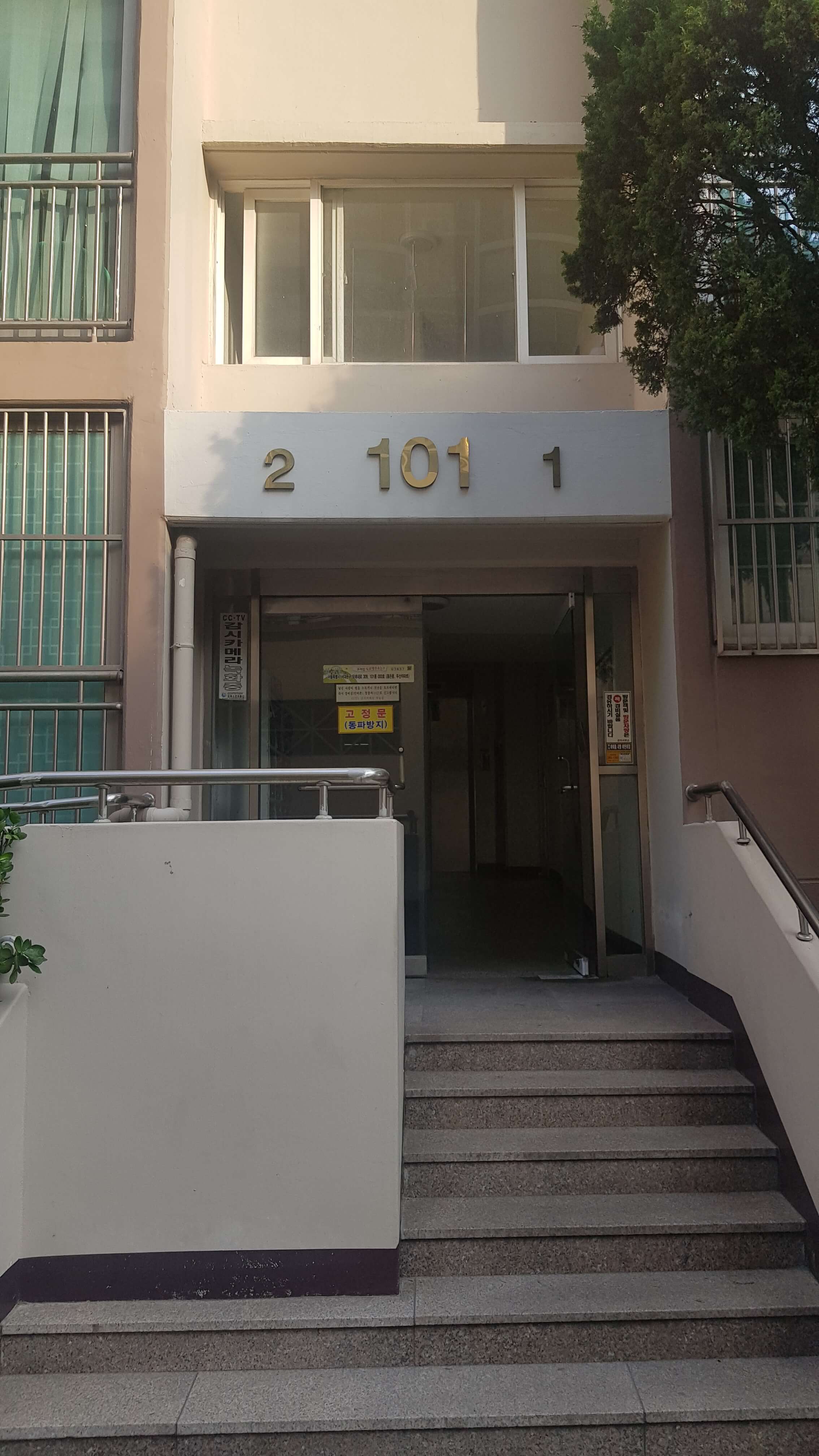 단지입구는 현관보안까진 안되어 있었고 계단식아파트였습니다