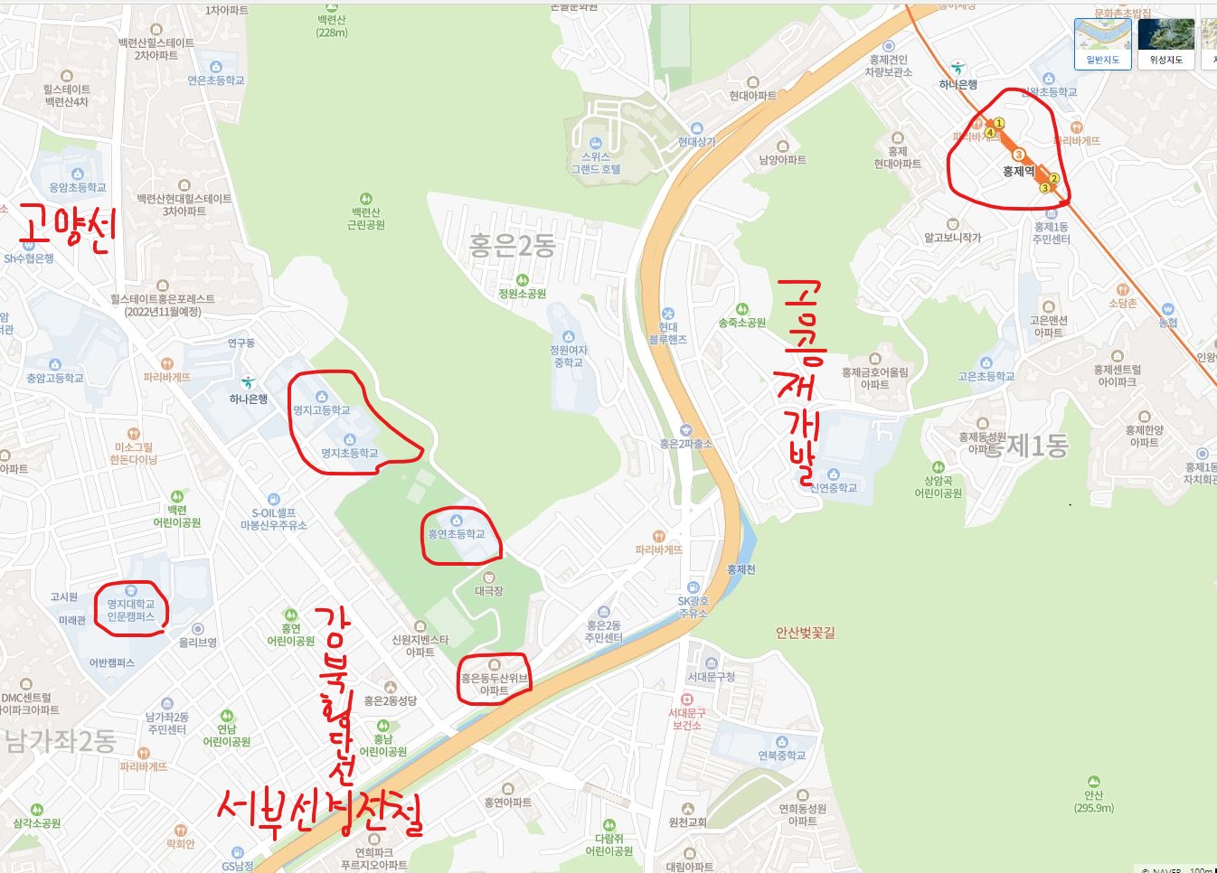 솔직히 서대문문화체육회관보다 바로 옆에 있는 홍연초등학교가 초품아급이라 어떤 위치에 있나 보려고 했거든요