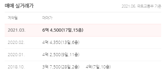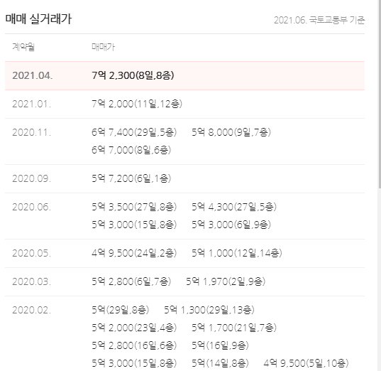 2021년 4월 7억2300만원에 매매 신고가를 갱신했습니다