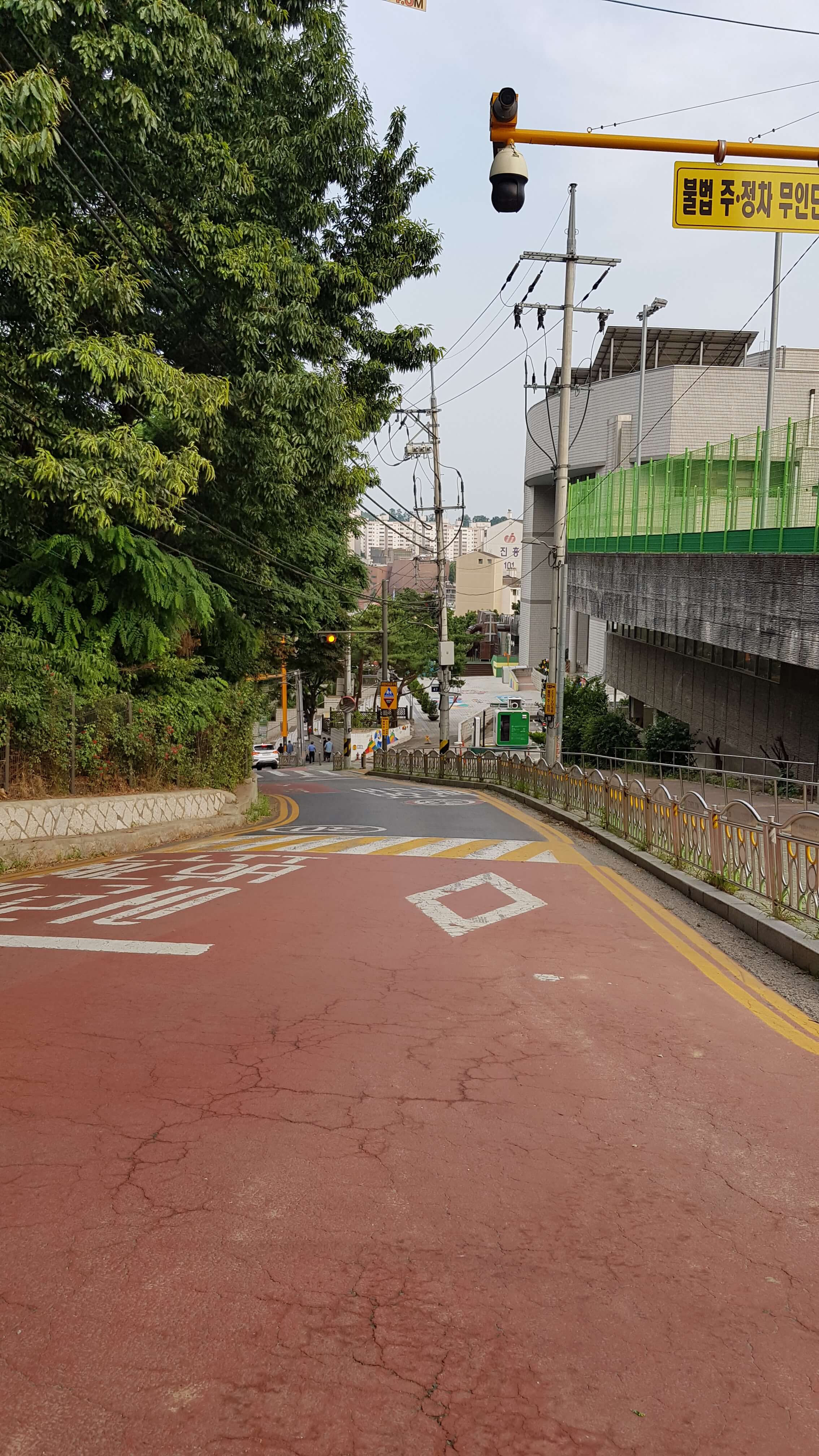 무지막지한 경사의 언덕이 있습니다 저도 꽤 힘들더군요 홍연초등학교 통학하는 학생들은 연약한 학생이 없겠어요...