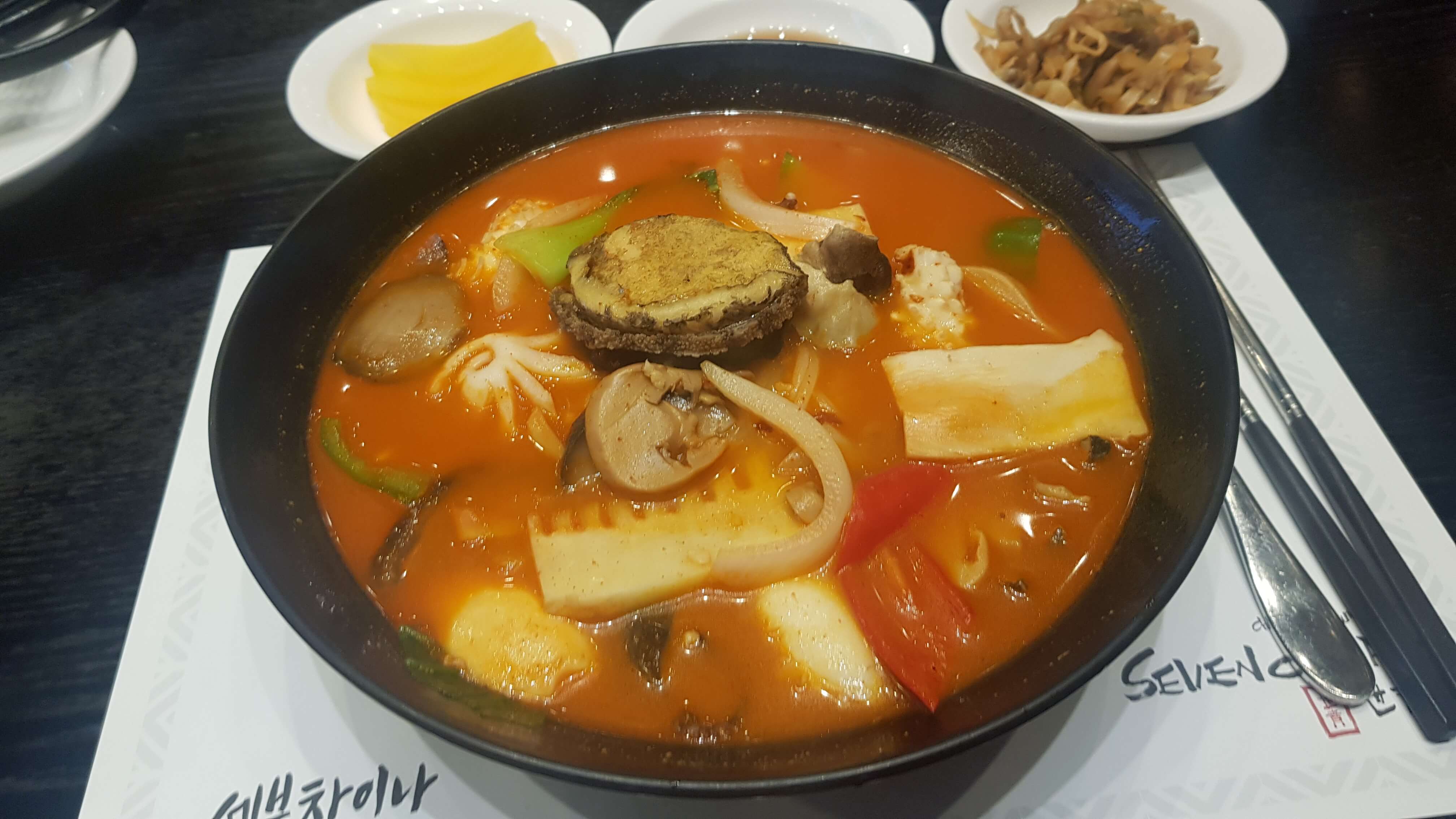 베이스는 원래 삼선짬뽕과 비슷한데 특이한건 국내산 왕전복이 들어가 있다는게 포인트인거 같네요