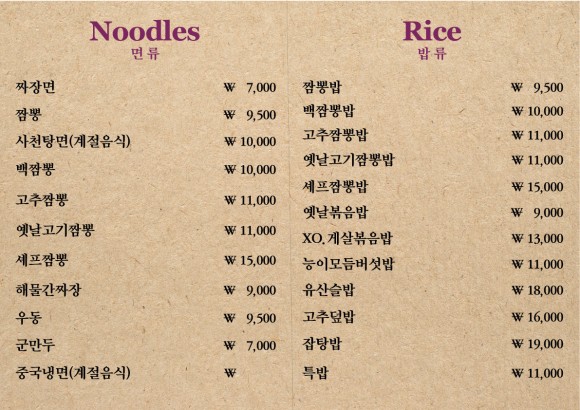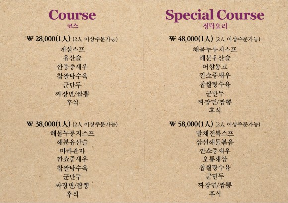 메뉴들은 코스요리서부터 기본요리 중국집 면요리 밥요리부터 다채롭게 있다고 봐야겠죠