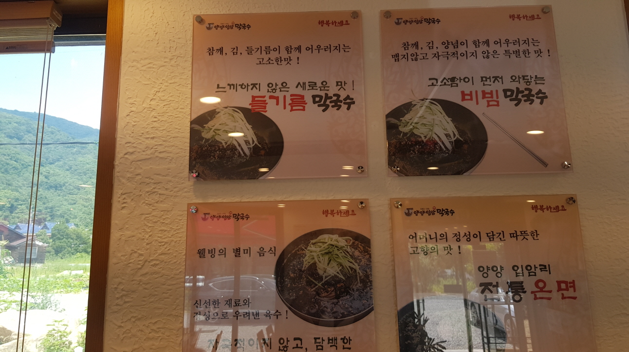 전통성을 강조하기 위함인가요? 입암메밀타운과 입암리막국수 전경을 입구에 걸어놓으셨더라고요