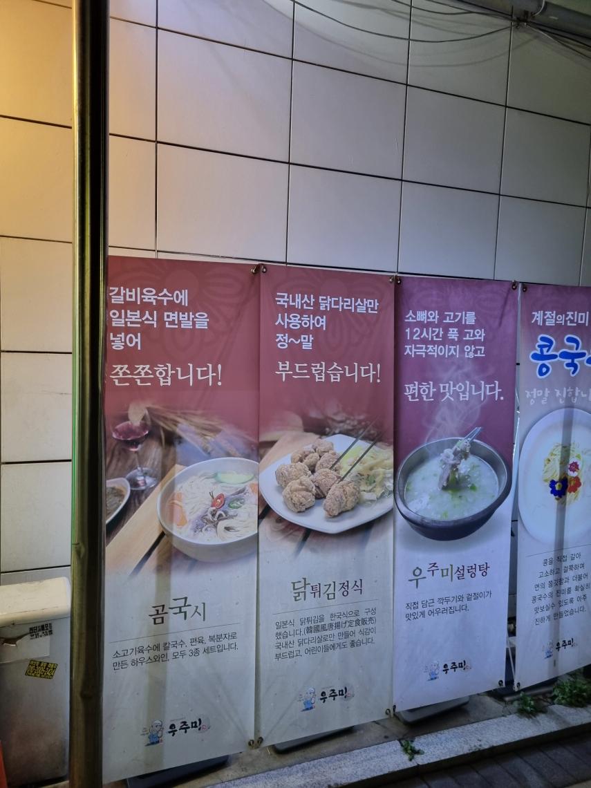 우주미는 일본생활을 하신 우주미사장님의 경험을 살려서 곰국시와 소고기보신탕 설렁탕 해물갈비찜 닭튀김정식등